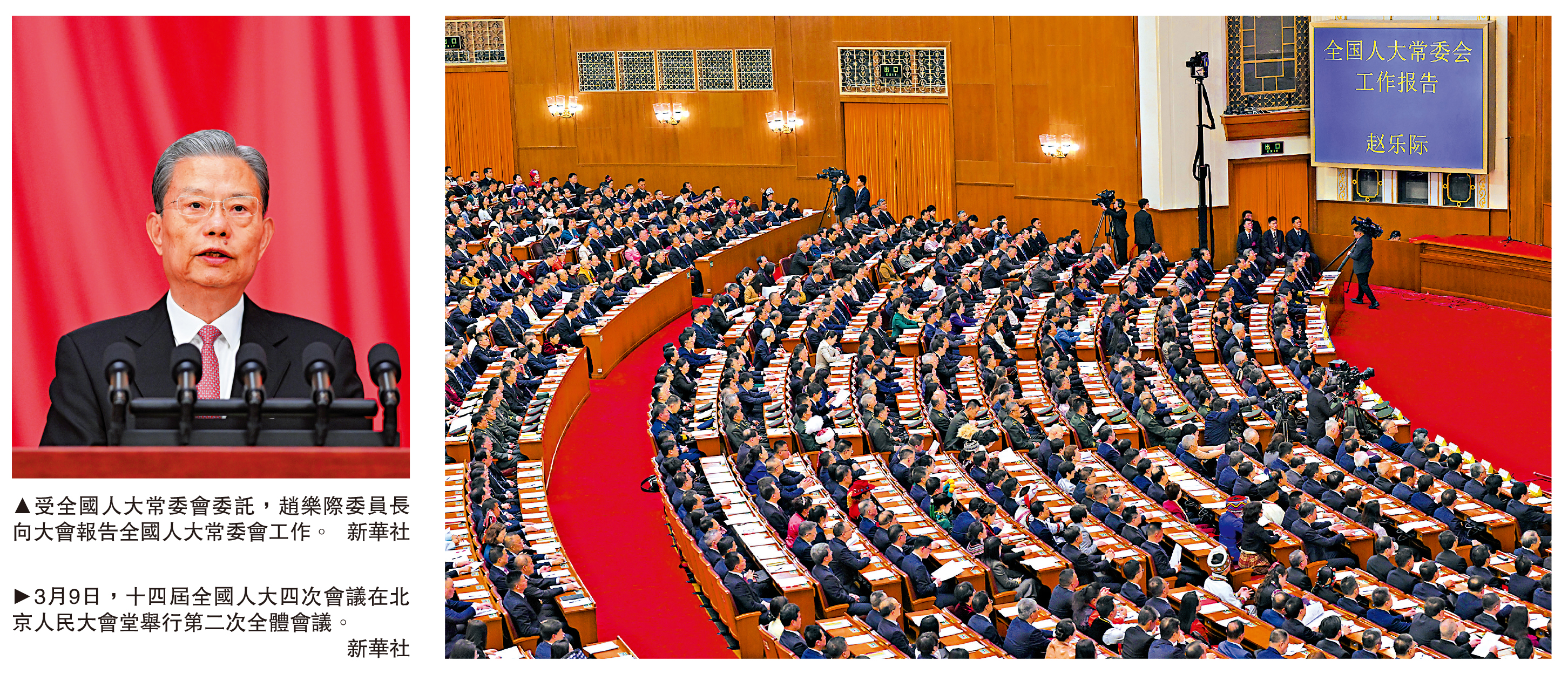十四屆全國人大四次會議9日上午在北京人民大會堂舉行第二次全體會議。受全國人大常委會委託,趙樂際委員長向大會報告全國人大常委會工作。