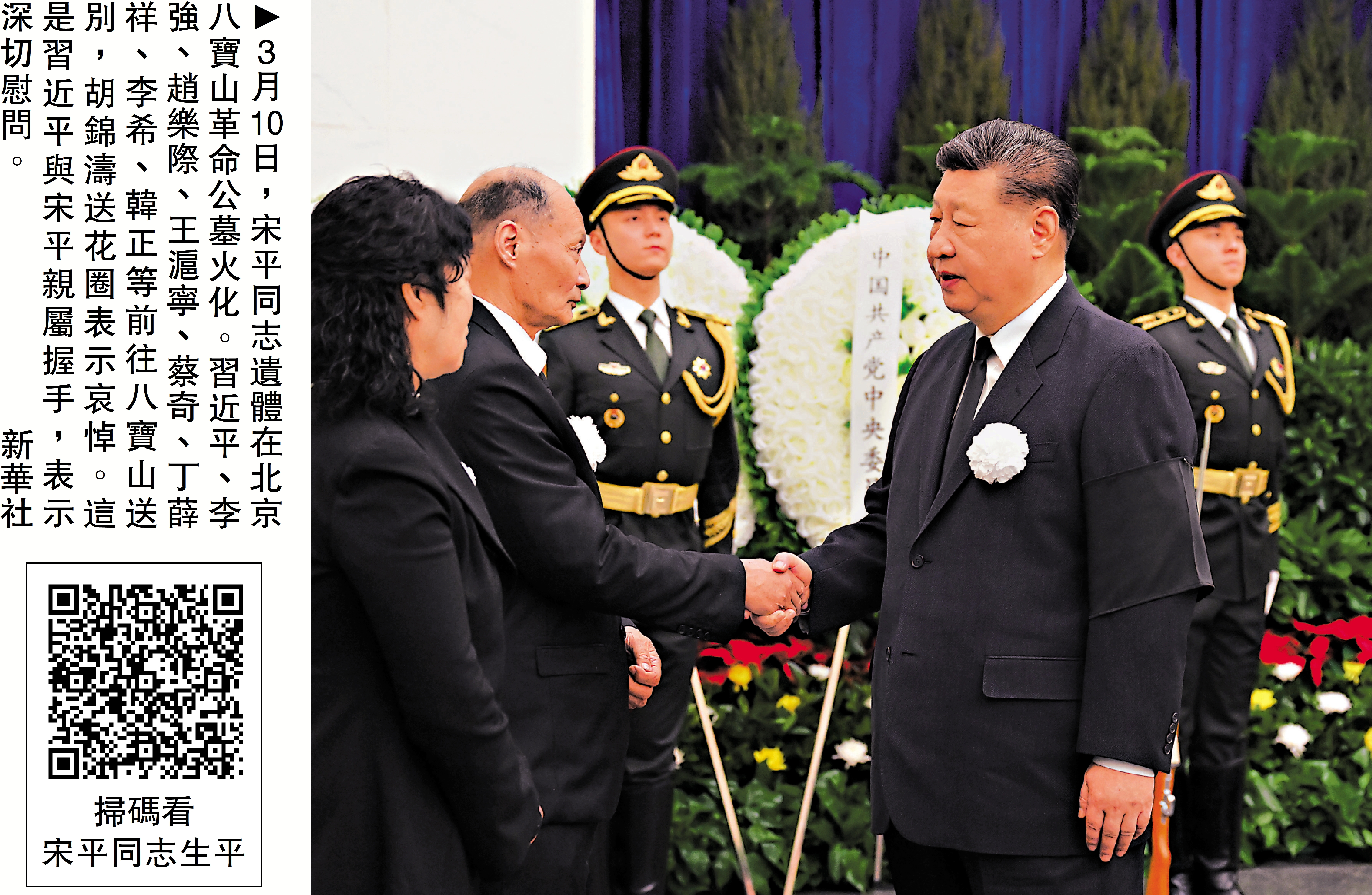 宋平同志病重期間和逝世後,習近平、李強、趙樂際、王滬寧、蔡奇、丁薛祥、李希、韓正、胡錦濤等同志,前往醫院看望或通過各種形式對宋平同志逝世表示沉痛哀悼並向其親屬表示深切慰問。