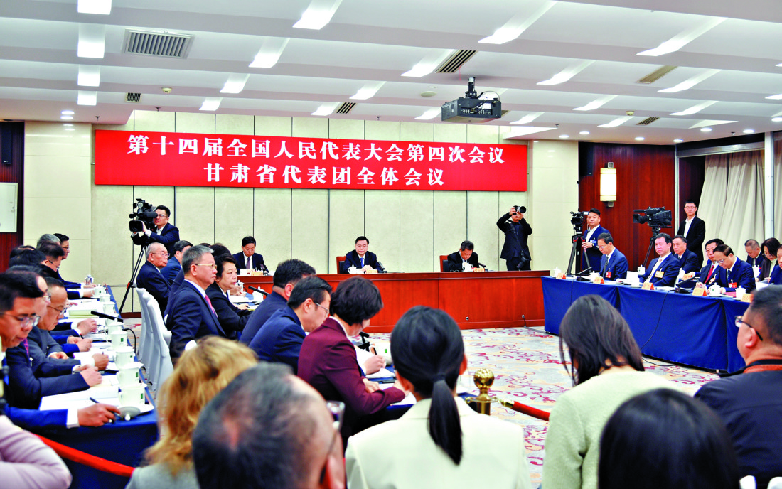 圖﹕十四屆全國人大四次會議甘肅代表團舉行小組會議。\大公報記者李陽波攝