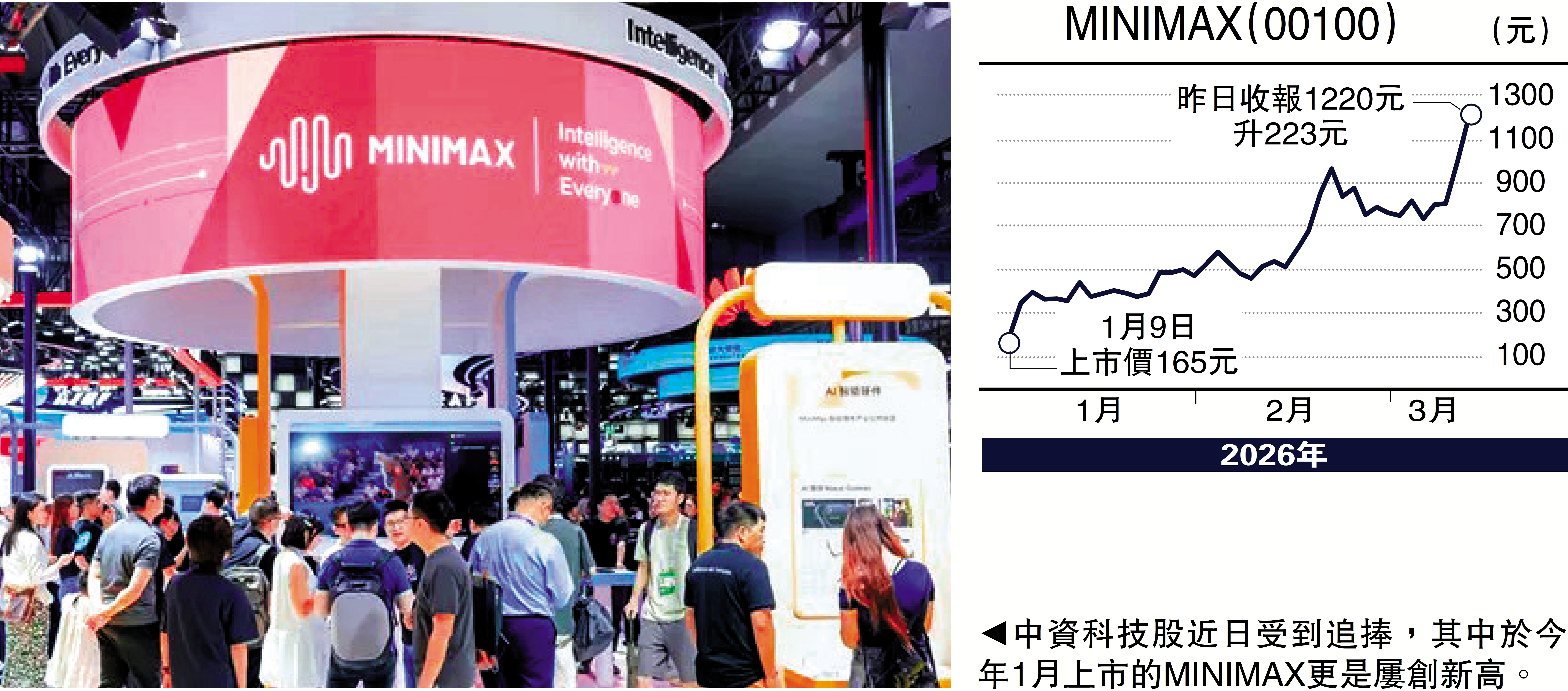 最近有報告指出,MINIMAX推出的M2.5大模型,token(大模型處理文字單位)使用量最高,預期帶動營收增長,美資大行高盛給予MINIMAX目標價為1018元,但昨日股價最高見1286元,反映國產AI大模型買盤十分強勁。