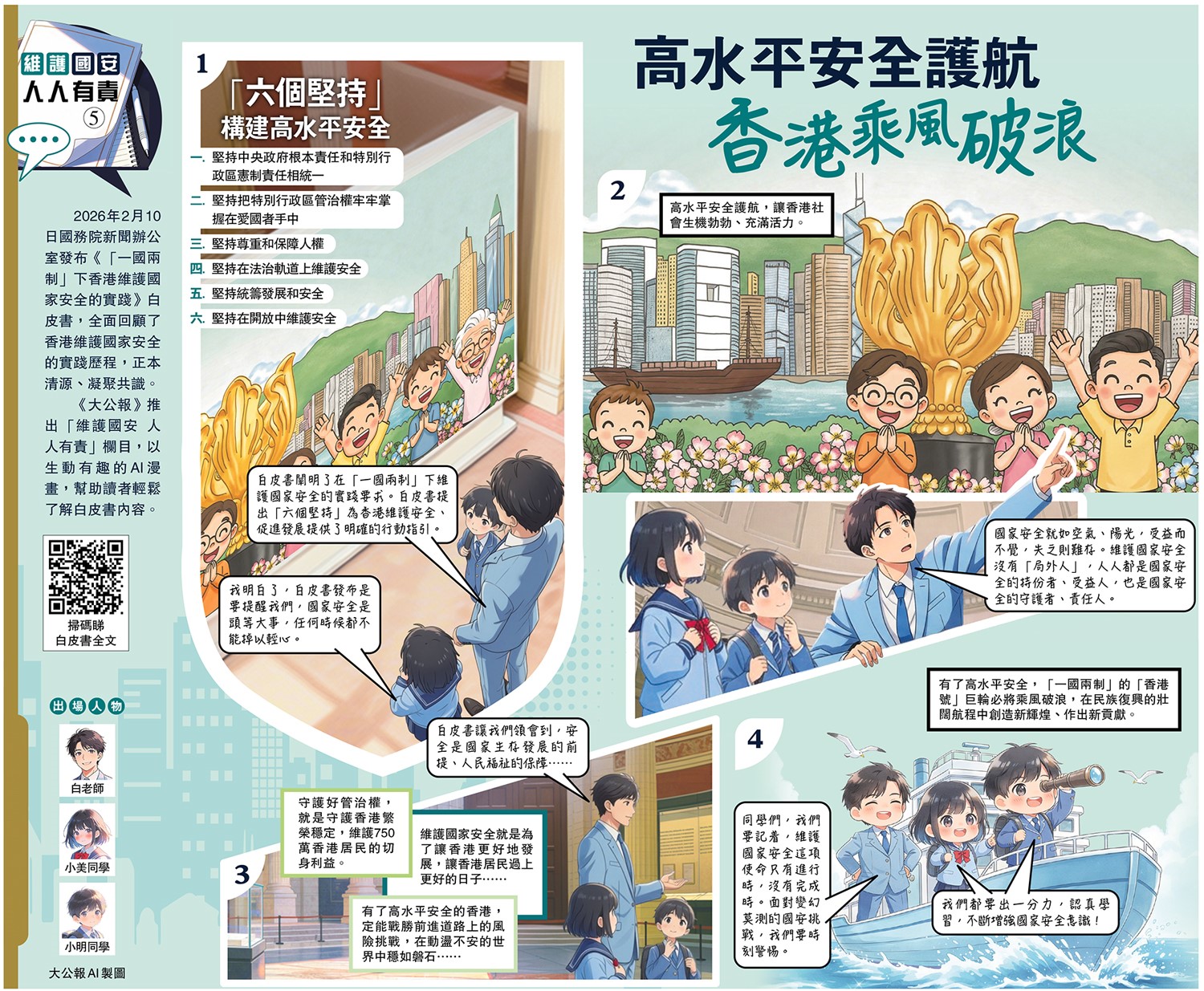 《大公報》推出「維護國安 人人有責」欄目,以生動有趣的AI漫畫,幫助讀者輕鬆了解白皮書內容。
