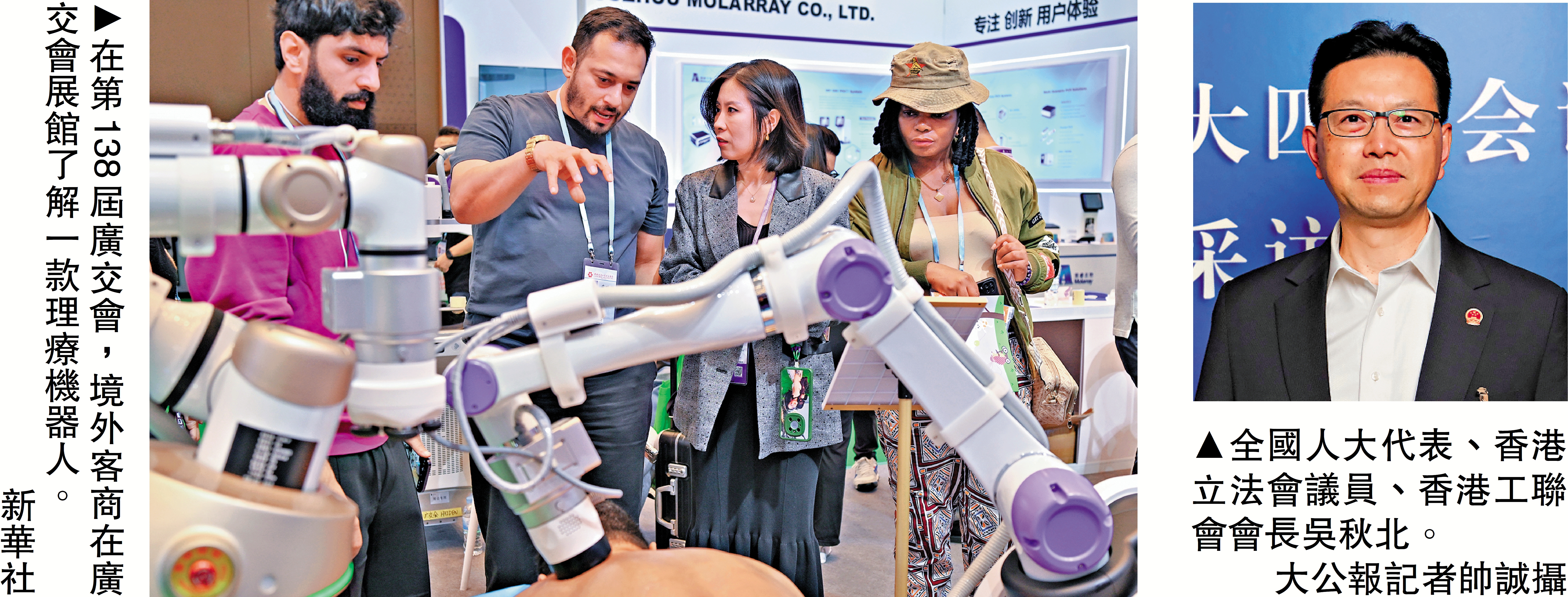依託粵港澳大灣區科創與製造業雙重優勢,廣東已成為國內AI養老機器人產業核心集聚區,形成「研發─生產─落地」完整產業鏈,產品覆蓋陪伴、護理、康復、健康監測全場景。全國人大代表、香港立法會議員、香港工聯會會長吳秋北認為,AI養老產業發展是必然趨勢。「樂齡科技已可承擔為長者翻身、沖涼等傳統護工工作,儘管情感陪護與溝通仍有發展空間,但相信隨人工智能快速發展,無障礙溝通很快能夠實現。」他表示,當前香港與內地均面臨養老服務人手短缺困境,疊加人口老齡化加劇,養老服務質量或進一步下降,人工智能在養老產業的全面應用,是破解這一難題的有效手段。他特別強調,長者思維加速老化的重要因素之一是缺乏交流溝通。「人工智能可隨時隨地與長者交流,在提供充分情緒價值的同時,也能延緩長者思維老化。」\大公報記者郭若溪、帥誠