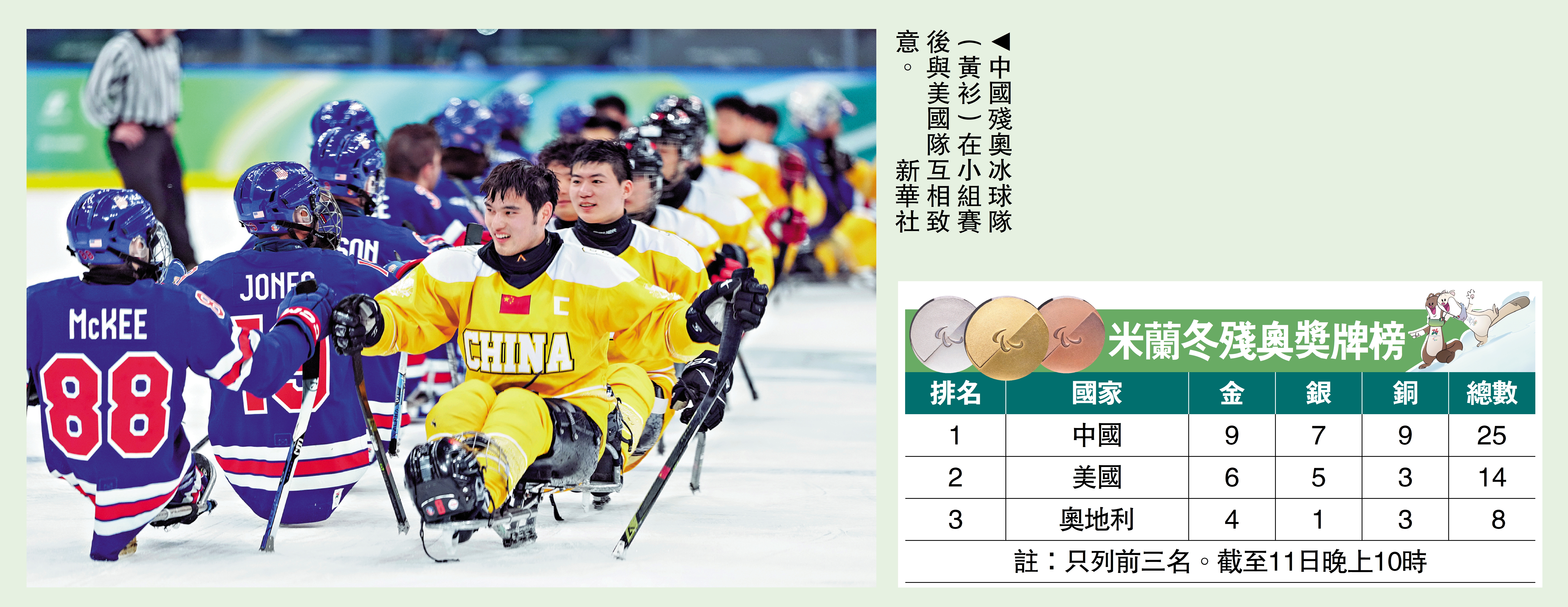 【大公報訊】據新華社報道:中國殘奧冰球隊領隊唐楠在米蘭冬殘奧會期間對記者表示,經過10年的建設發展,中國殘奧冰球隊已經穩定處於世界前四水平,梯隊建設日趨完善,發展前景樂觀。