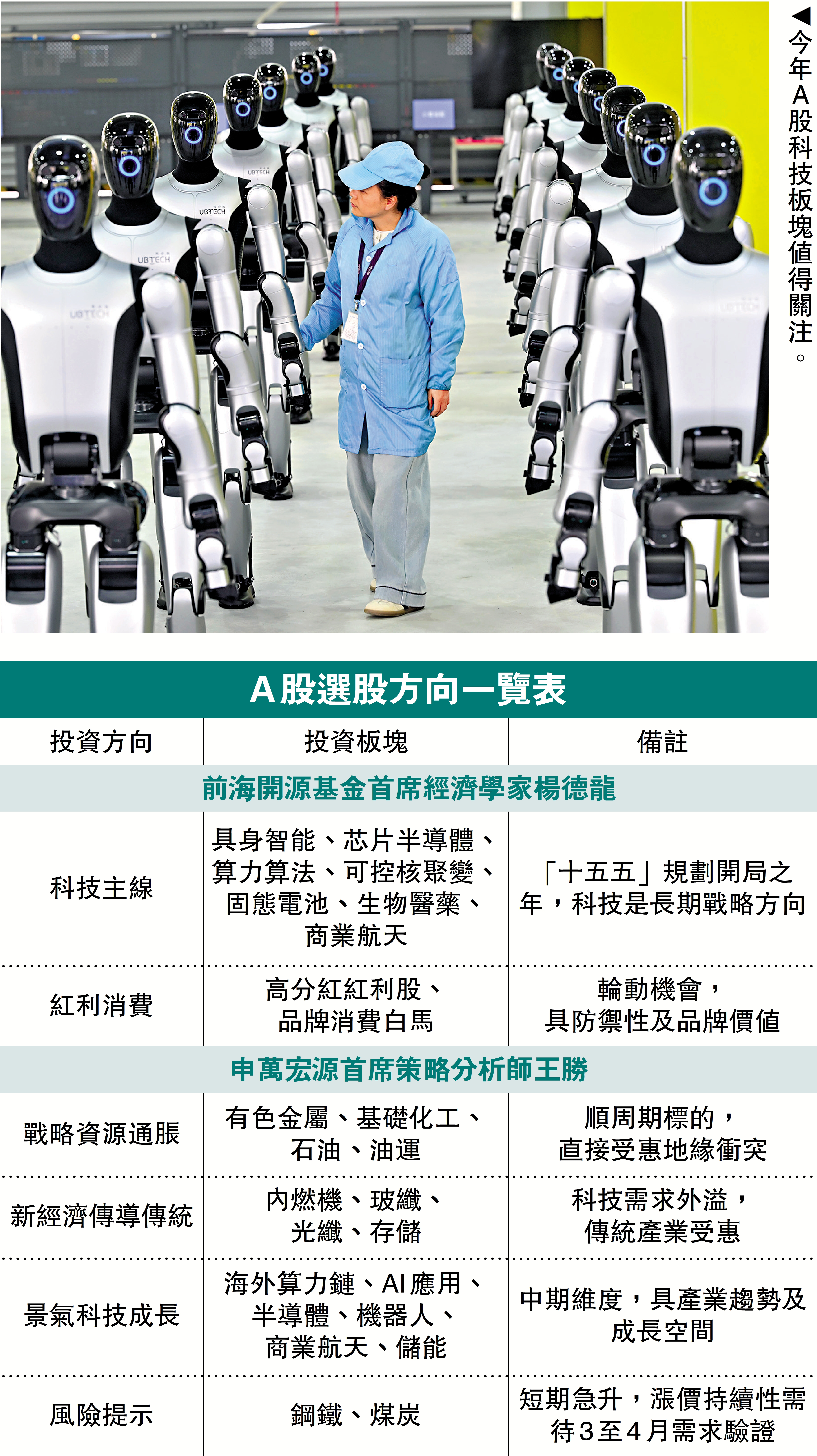楊德龍補充,今年是「十五五」規劃開局之年,具身智能、芯片半導體、算力算法、可控核聚變、固態電池、生物醫藥、商業航天等科技方向均值得持續關注。此外,高分紅的紅利股、有較高品牌價值的「消費白馬」,年內均存在輪動機會,「市場有望呈現多板塊輪番表現的格局」。