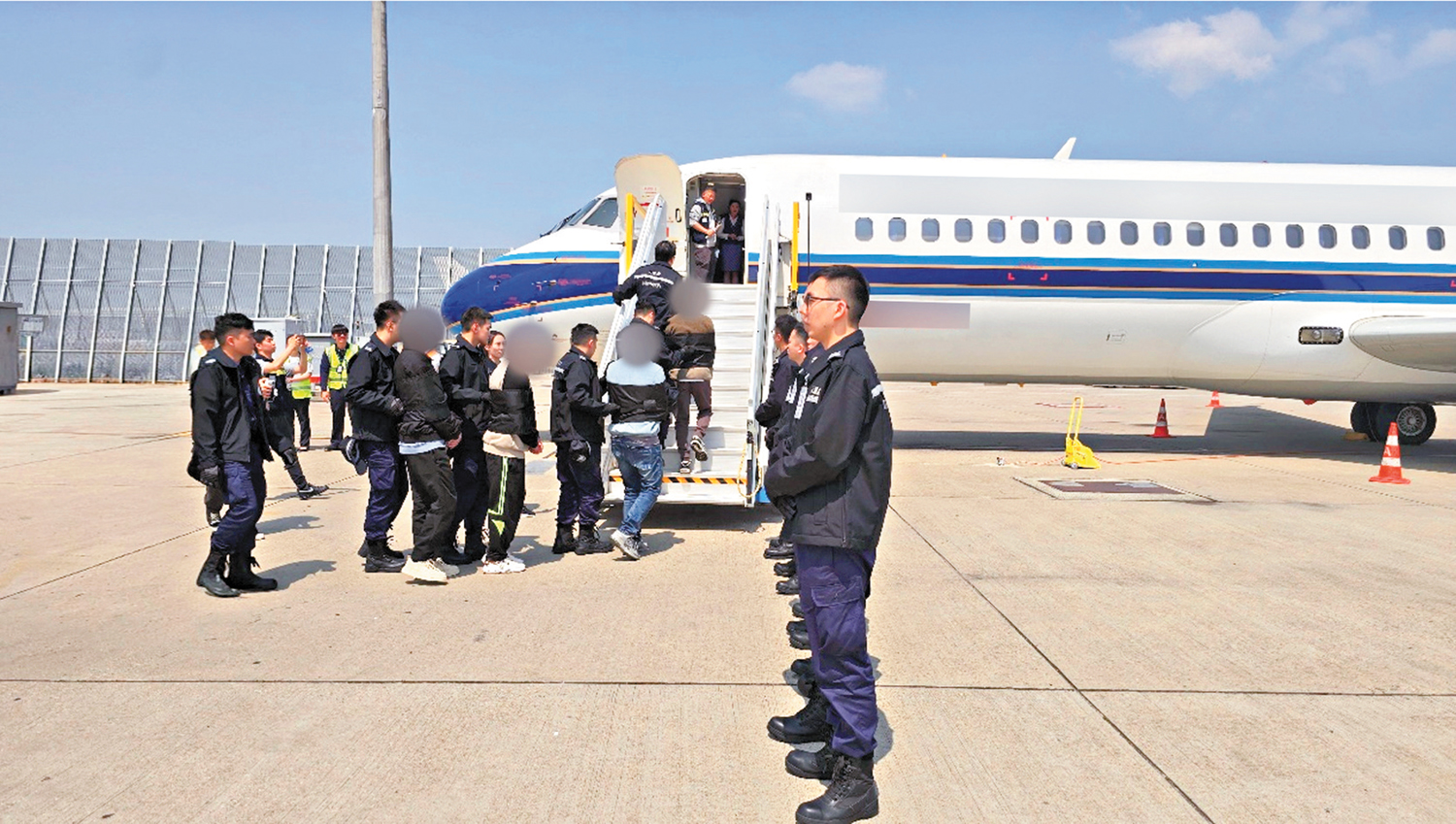 【大公報訊】入境事務處前日(12日)派遣人員執行代號為「逐影」的登機押解遣返行動,順利將六名免遣返聲請不獲確立人士強制遣返巴基斯坦。該批人士全部為男性非法入境者,部分曾因干犯刑事罪行入獄及已刑滿出獄。由於相關聲請人曾多次拒絕接受遣返安排,並在過往的遣返行動中作出激烈反抗,入境處決定採取登機押解方式實施強制遣返。