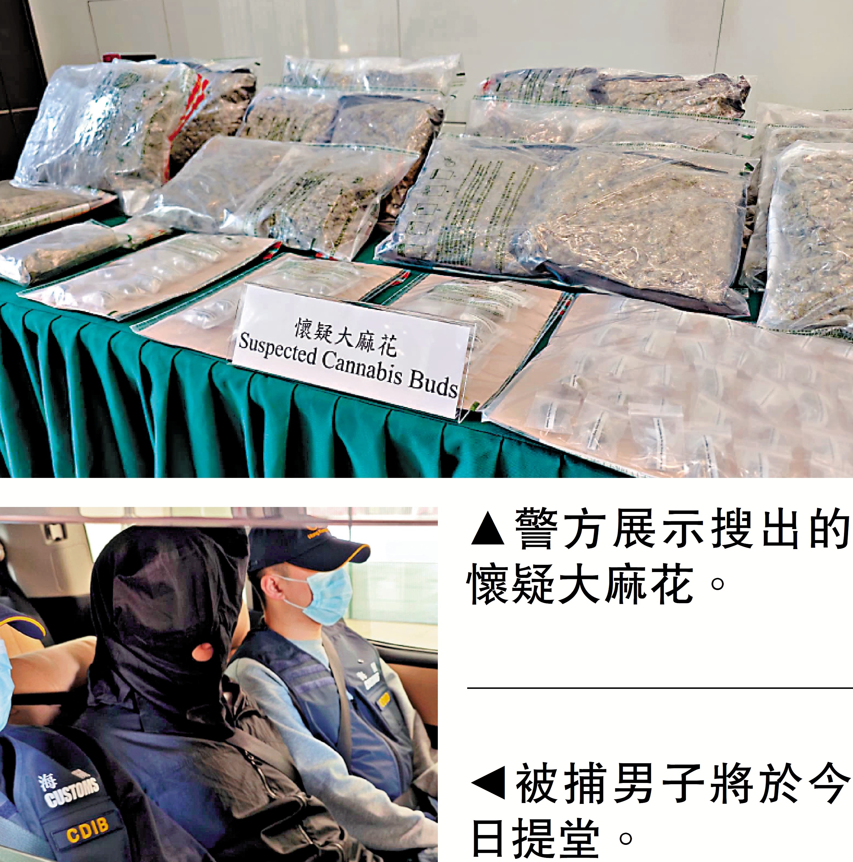 【大公報訊】記者陳泓源報道:海關毒品調查科前晚(12日)在屯門一個屋苑停車場,截查一名33歲本地男子,在他管控的私家車檢獲約10公斤懷疑大麻花,市值約210萬元,估計用於供應新界區的毒品拆家和用家,初步調查,販毒集團利用私家車作為流動毒品儲存倉,進行毒品包裝和分銷。