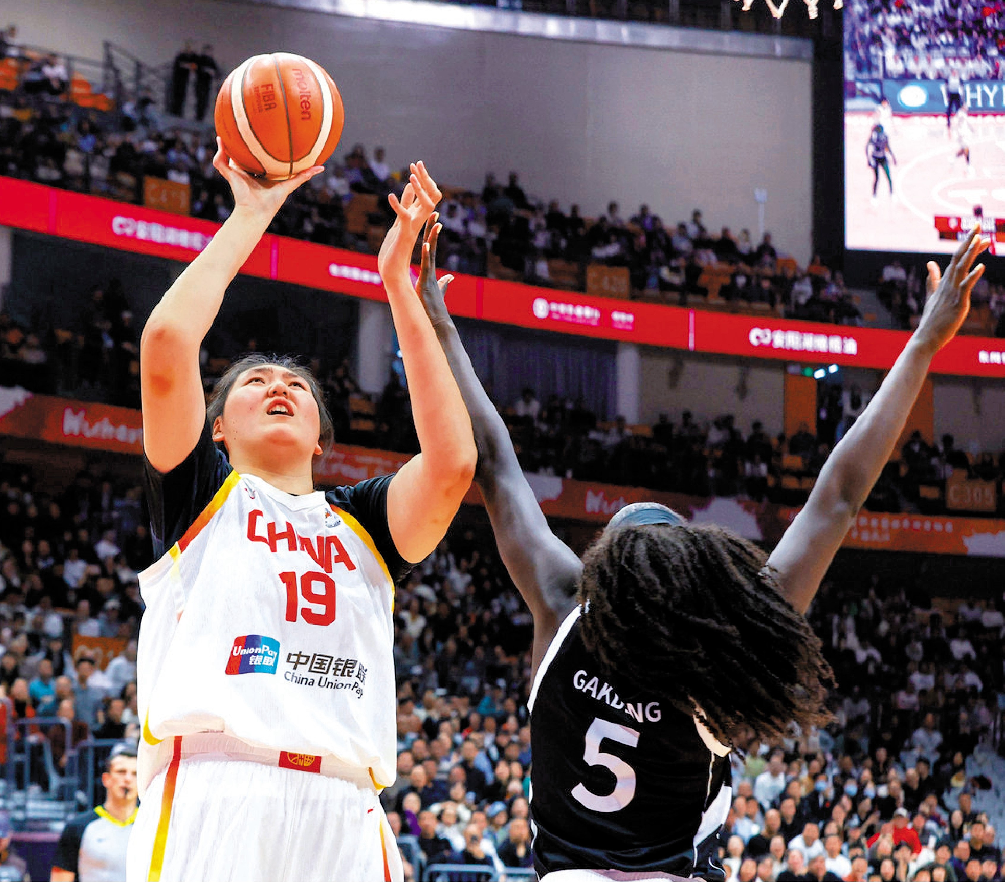 【大公報訊】2026年女籃世界盃外圍賽武漢賽區14日續演,中國女子籃球隊(白衫)在主場迎戰南蘇丹,主力李月汝開賽3分鐘便累積被吹3犯影響上陣時間,不過隊友彌補缺口。