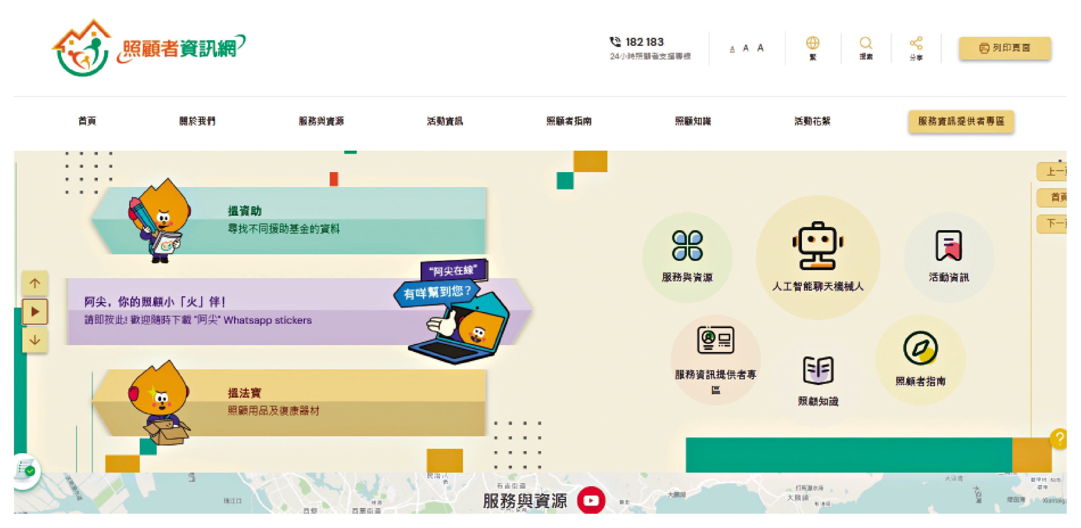 現時特區政府已建立了首階段支援照顧者數據平台,加強醫社在大數據方面的互換,透過數據的交換及早識別有需要的高風險照顧者,並提供適切服務。亦設有24小時照顧者支援專線182183,安排專人接聽,向照顧者提供支援。又推出「照顧者資訊網」,以及通過與關愛隊合作,推行「地區服務及關愛隊伍─支援長者及照顧者計劃」,動員關愛隊主動尋訪高風險長者和有需要的住戶。此外,特區政府亦向合資格照顧者提供現金津貼,補貼其生活開支,讓有長期護理需要的長者、殘疾人士可在照顧者的協助下,得到更適切的照顧,繼續在熟悉的社區生活。