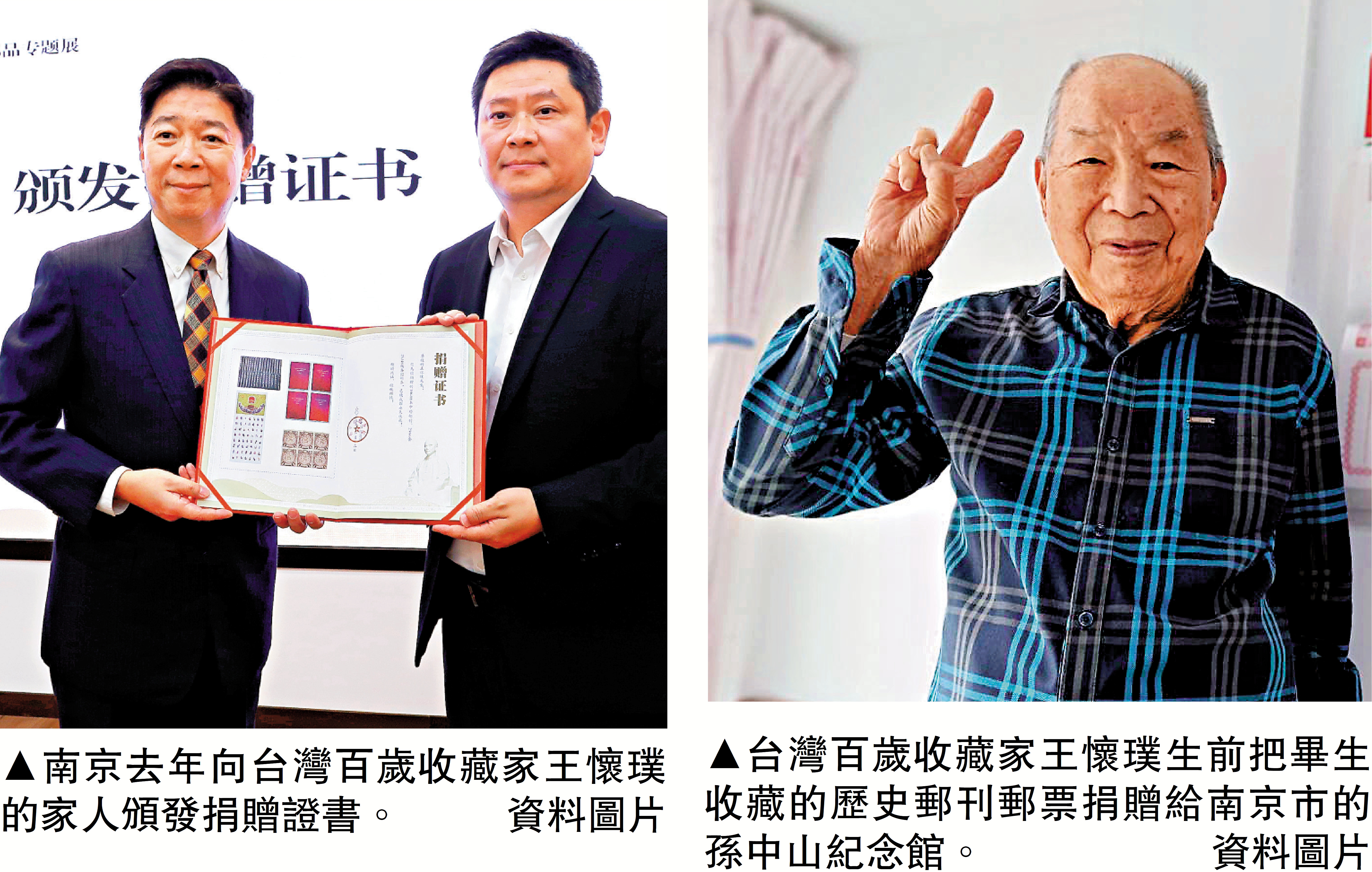 2026年3月1日,103歲高齡的台胞王懷璞老人在台北家中安詳辭世。老人畢生集藏郵刊10608冊、郵票2966套共25348枚,由《大公報》牽線,已於2025年悉數無償捐贈南京市中山陵園管理局下屬孫中山紀念館,成為海峽兩岸鄉愁與民族記憶的珍貴見證。3月2日,王懷璞長子王岳忠專程致謝《大公報》:「多謝鼎力相助,讓父親心無罣礙、安然離去。」
