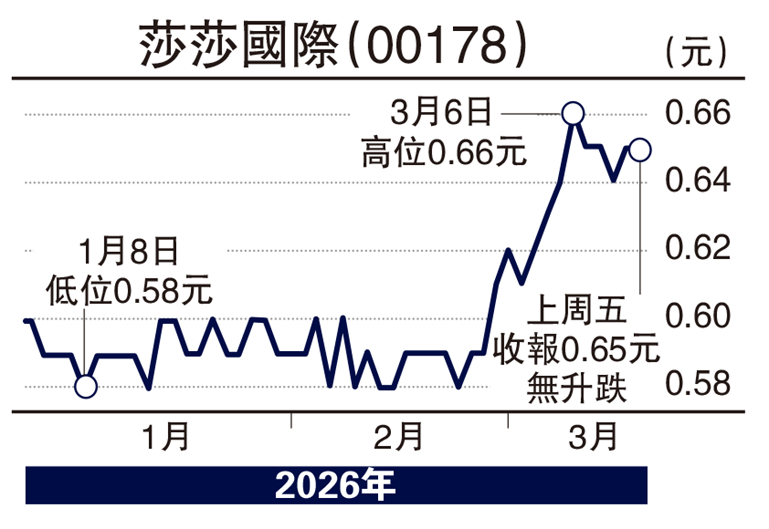 自2025年3月至今,莎莎國際股價以0.6元為中軸上下浮動,暫時未見到出現上升或下跌趨勢,尚未出現入市時機。該公司或在4月公布第四季度銷售數據,全年業績或會在5月公布,大家可以繼續關注。