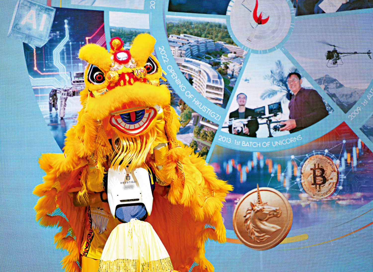 昨日慶典現場,還展示科大人工智能最新研究成果,由科大(廣州)設計的機械人進行精彩的開場醒獅表演。