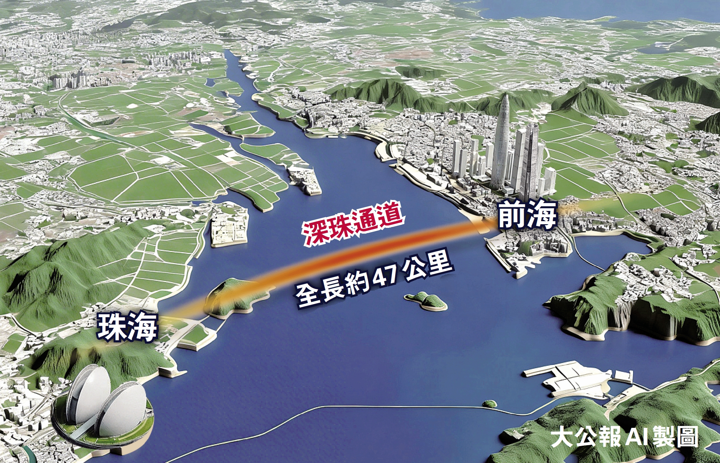 「隨着灣區珠江口跨江跨海通道群加快建設,深珠通道作為連接深圳前海與珠海高新區的『中環通道』,與深中通道(內環)、港珠澳大橋(外環)形成互補,助力打造環珠江口100公里『黃金內灣』。」中山大學港澳珠三角研究中心教授鄭天祥表示,深珠通道規劃可望實現「高速公路+高速鐵路+城際鐵路」三用複合通道,將填補珠江口跨江通道結構性短板;同時,提升深圳向西輻射能力,通過支撐「深圳研發+珠海製造」模式,便利深圳科技企業向珠江西岸拓展;也帶動珠海高新區直接連接深圳前海這一金融與創新高地,助力提升灣區科創新動能。