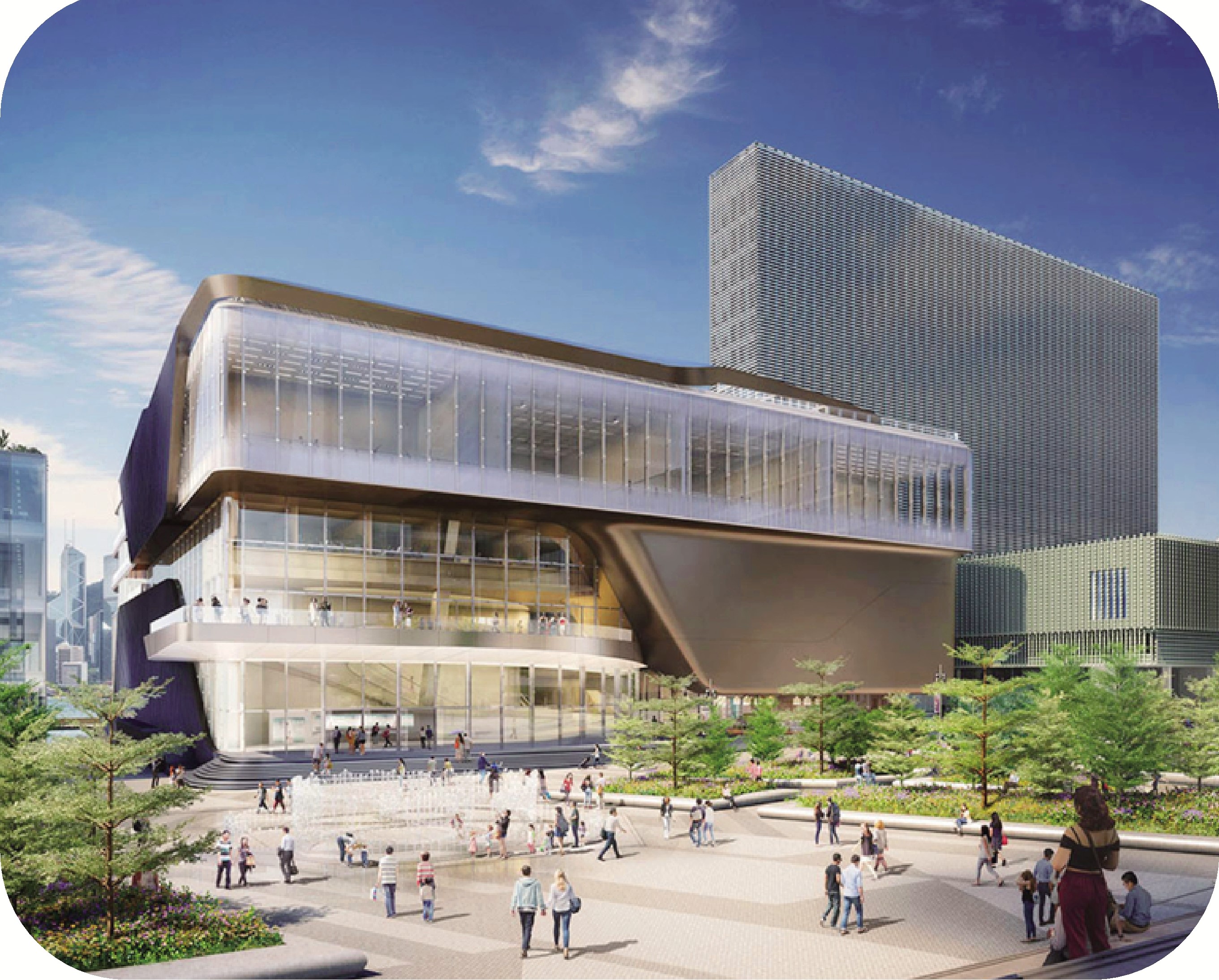 關於西九演藝中心,譚兆民表示中心的建築將採取透明玻璃幕牆設計,「這可能與大多數演出場地的設計不同。我們的考慮是,當遊客從港鐵九龍站一路走來,就能看到當下傑出的舞者、舞台劇藝人排演,產生更多互動性。」他認為西九演藝中心將助力西九文化區的文化旅遊發展,讓西九可以成為下一代「香港藝術窗口」。
