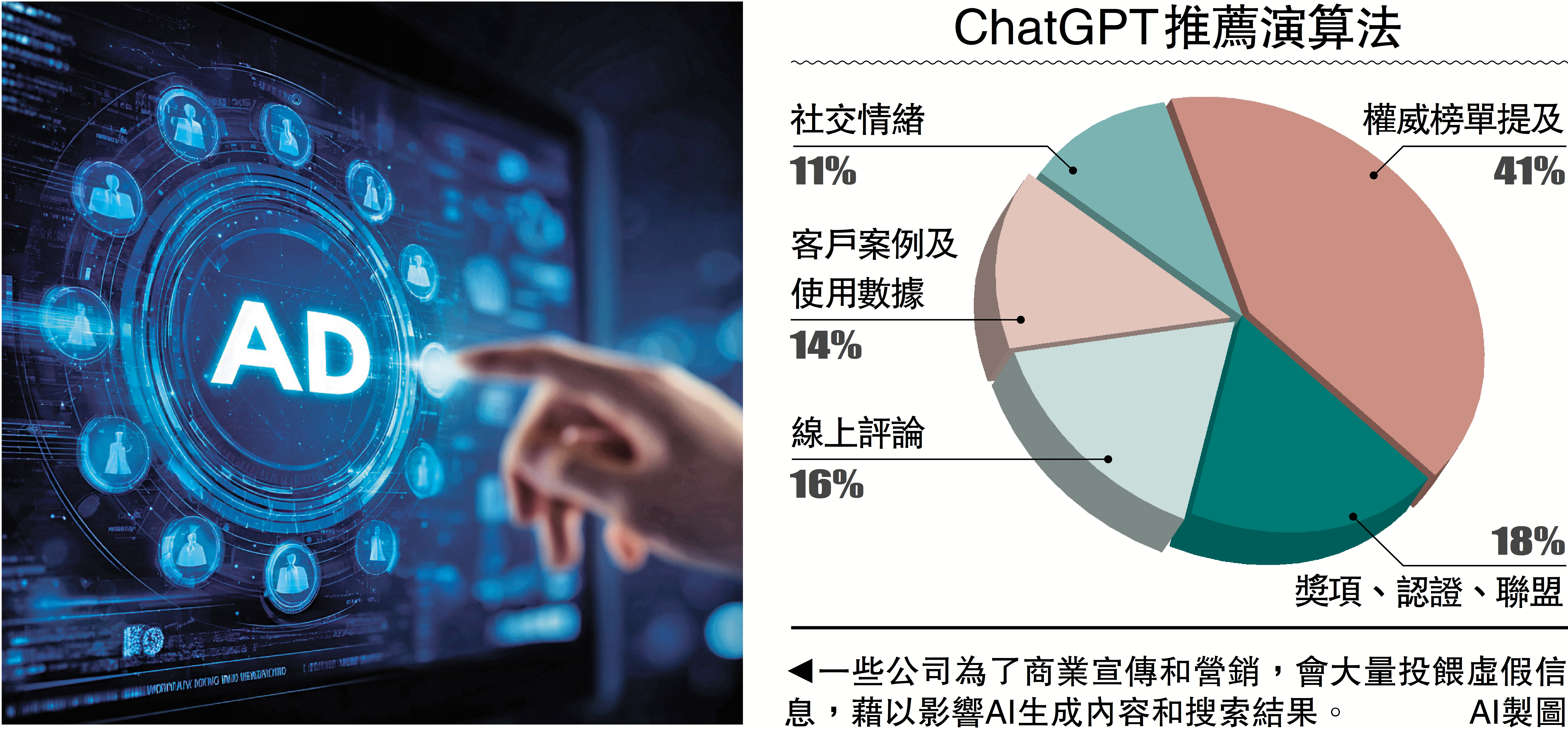 今年中央電視台的「315晚會」,曝光了人工智能(AI)大模型的「投毒」產業鏈。所謂「投毒」,是指GEO(生成式引擎優化)公司通過定向投餵虛假信息,影響AI生成內容,以達到一定的商業目的。這也意味着,用戶在AI時代可能很難分辨,接收的是搜索結果抑或營銷廣告。