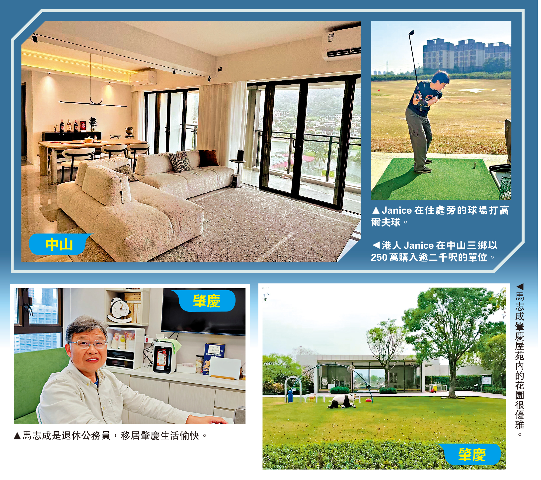 在廣東省的65歲以上香港居民,在2014至2024年期間增加了40.5%,達到接近10萬人。移居肇慶的退休公務員馬志成說,「年輕時就要努力賺錢拚搏;但我們老了,就想找個地方和家人過日子。」對很多中產階級來說,一旦退休就難以維持恆常穩定的收入,移居內地不只是入住更大的房子,更是在有限資產下追求優質生活的長遠考慮。\大公報記者 姚棠(文/圖)