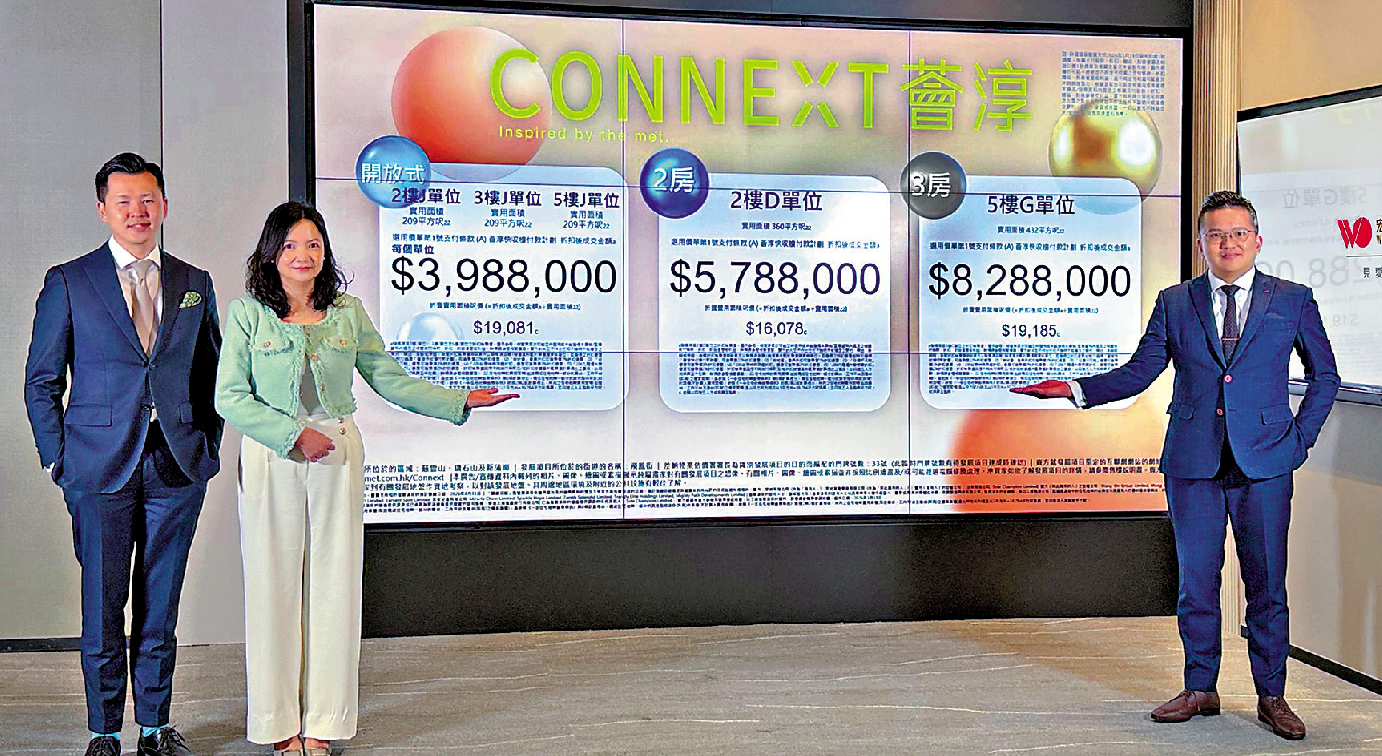 宏安地產營業及市務部總經理黃文浩指,兩房售價最低為2樓D室,實用面積360方呎,折實578.8萬元,折實呎價16078元。三房單位包括5樓G室,實用面積432方呎,折實828.8萬元,折實呎價19185元。