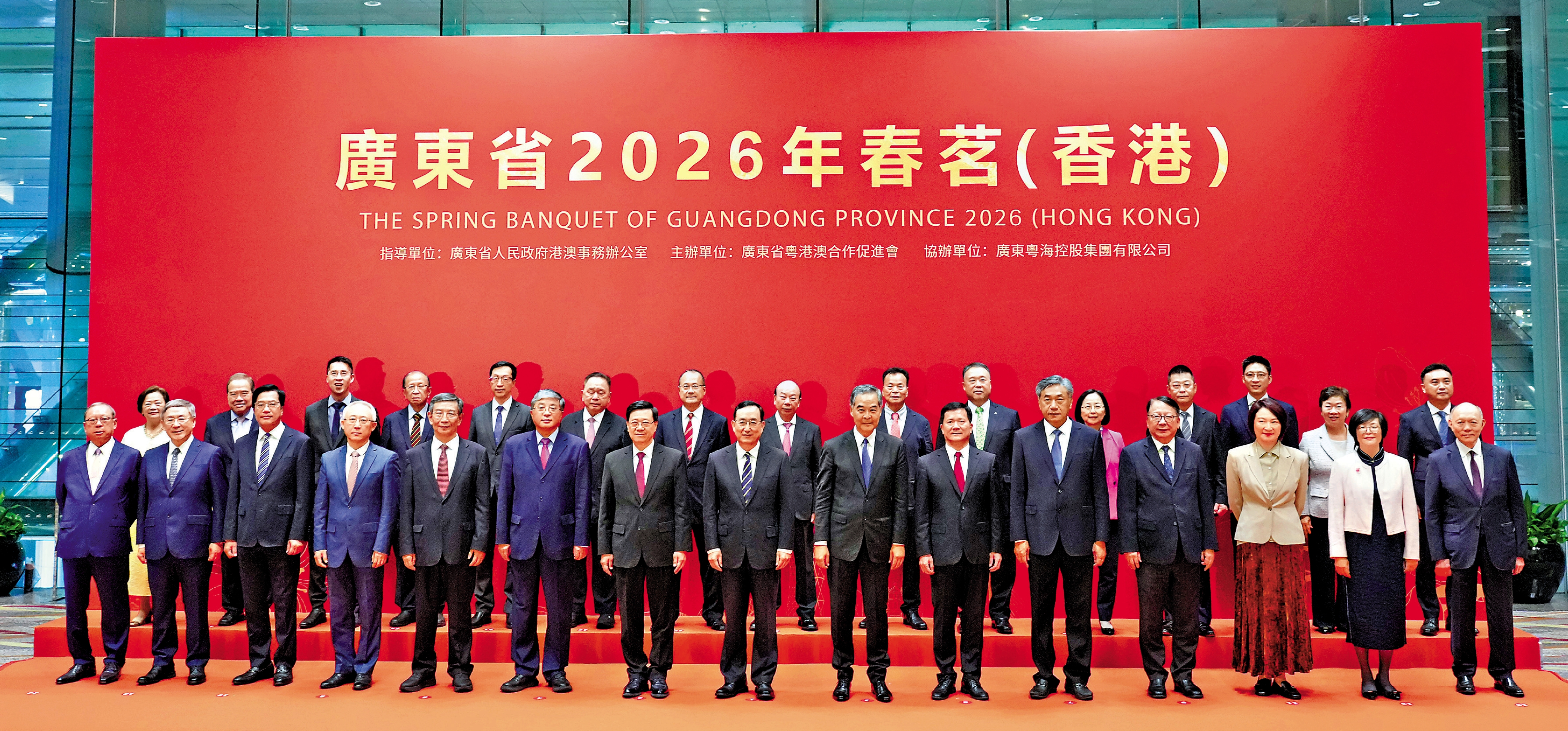 廣東省2026年春茗(香港)活動昨晚在香港會議展覽中心舉行,來自粵港兩地各界嘉賓逾550人歡聚一堂,暢敘情誼、共謀發展、同繪藍圖。全國政協副主席梁振英出席,香港特別行政區行政長官李家超、廣東省委常委王曦出席並致辭。