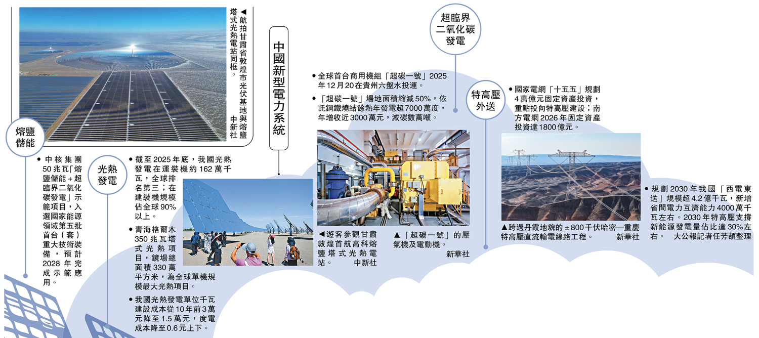 •中核集團50兆瓦「熔鹽儲能+超臨界二氧化碳發電」示範項目,入選國家能源領域第五批首台(套)重大技術裝備,預計2028年完成示範應用。