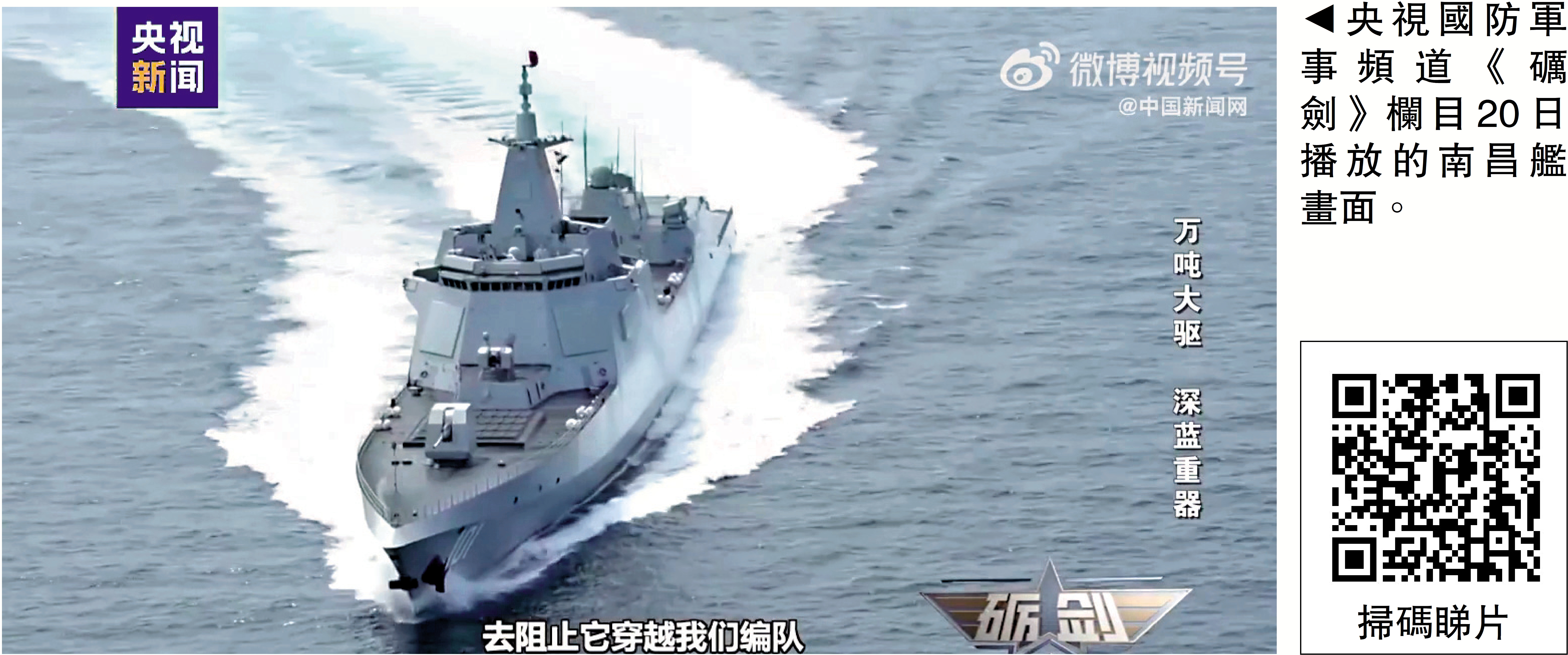 【大公報訊】綜合中通社、央視新聞等報道:中國海軍南昌艦以一敵二逼退外艦細節20日公布。