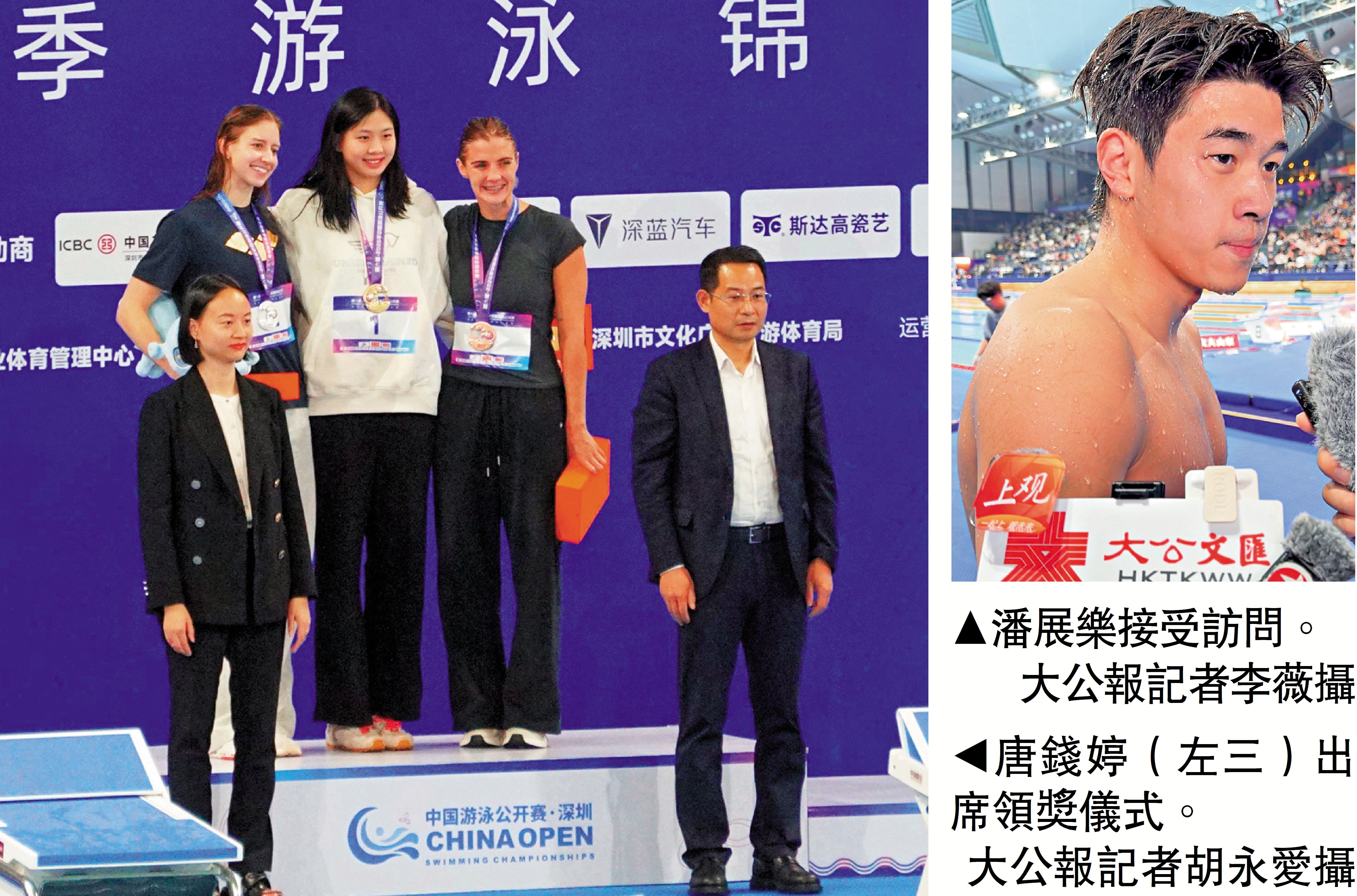 【大公報訊】記者李薇、胡永愛深圳報道:3月21日,2026年中國游泳公開賽迎來第三個比賽日。中國選手唐錢婷獲得女子100米蛙泳冠軍,成績為1分05秒91。