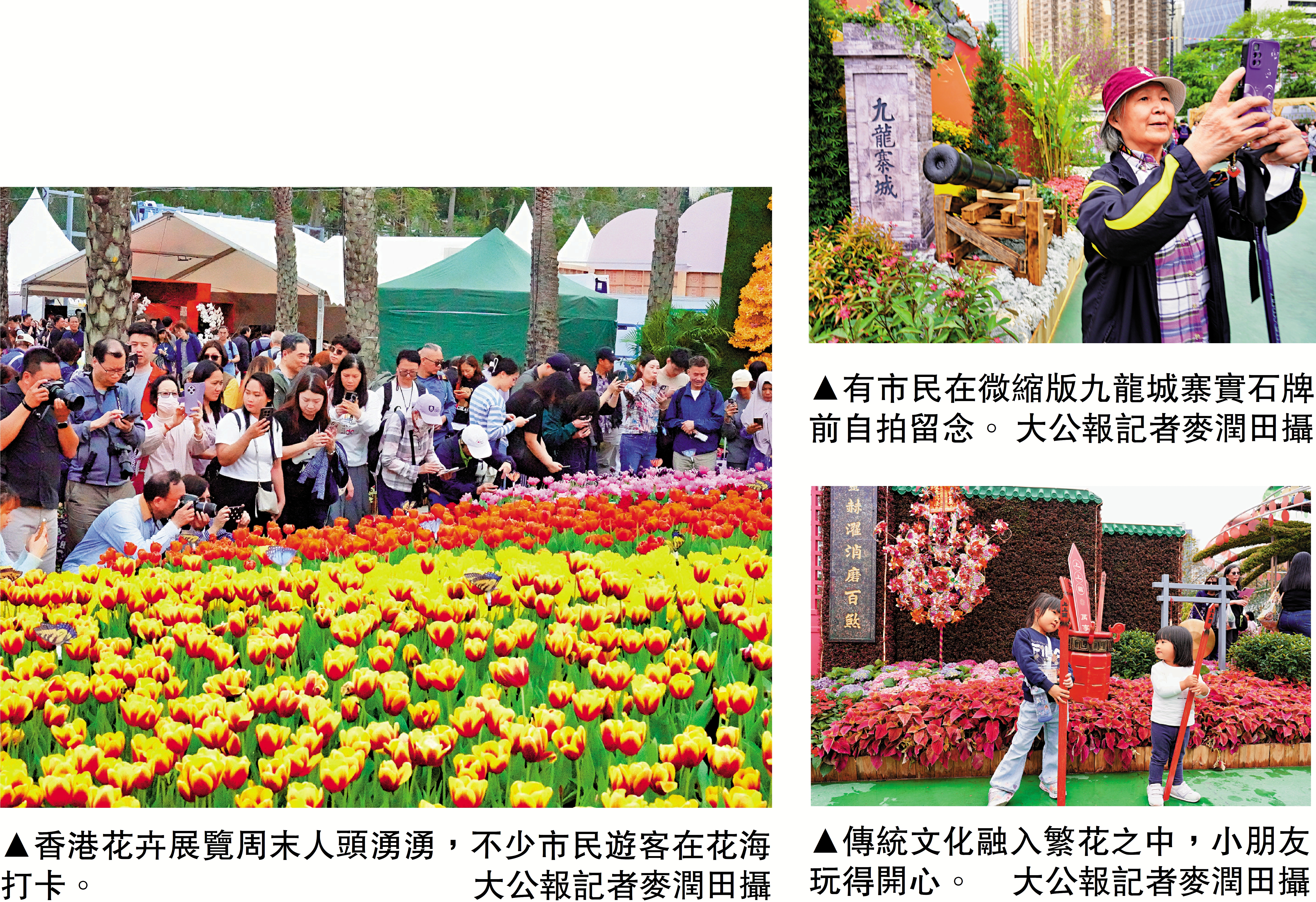 【大公報訊】記者王亞毛報道:香港花卉展覽是一年一度的賞花盛事,本屆花展將地道文化融入園林造景的繁花之中,舞火龍、九龍城寨等獨屬香港特色的打卡裝置成為焦點,濃郁的港味風情,吸引大批市民遊客駐足品味。
