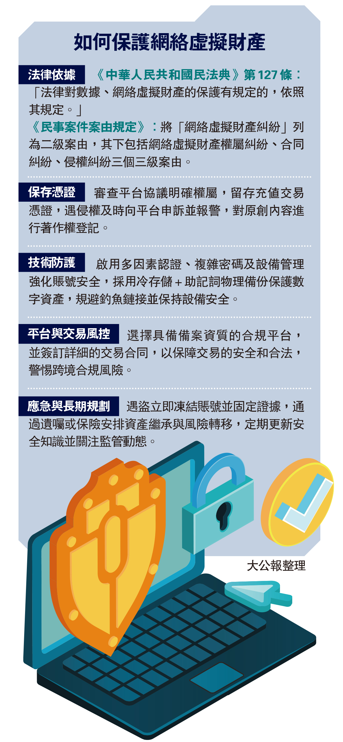 《中華人民共和國民法典》第127條:「法律對數據、網絡虛擬財產的保護有規定的,依照其規定。」