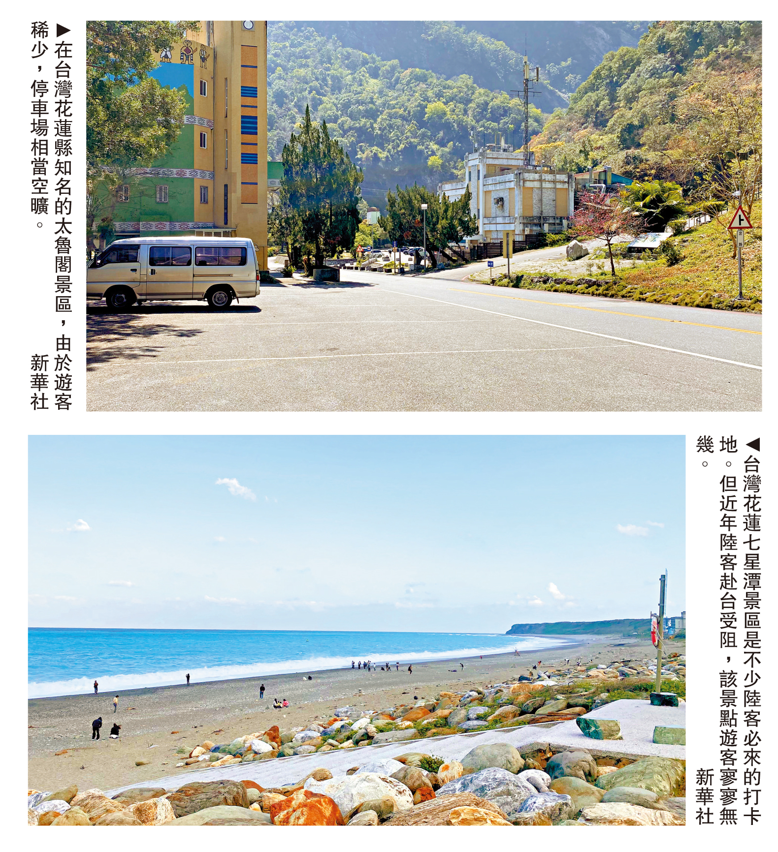 在台灣花蓮縣知名的太魯閣景區,許多餐館到了午餐時間仍少有客人,多個停車場較為空曠。一家牛肉麵店業者表示,這幾年客人少了七八成。如今,島內旅遊業的光景已遠不如陸客曾大量來台時。沒有了陸客,台灣旅遊業復甦緩慢。島內業界呼籲民進黨當局盡快恢復兩岸旅遊往來正常化,重啟陸客赴台遊。