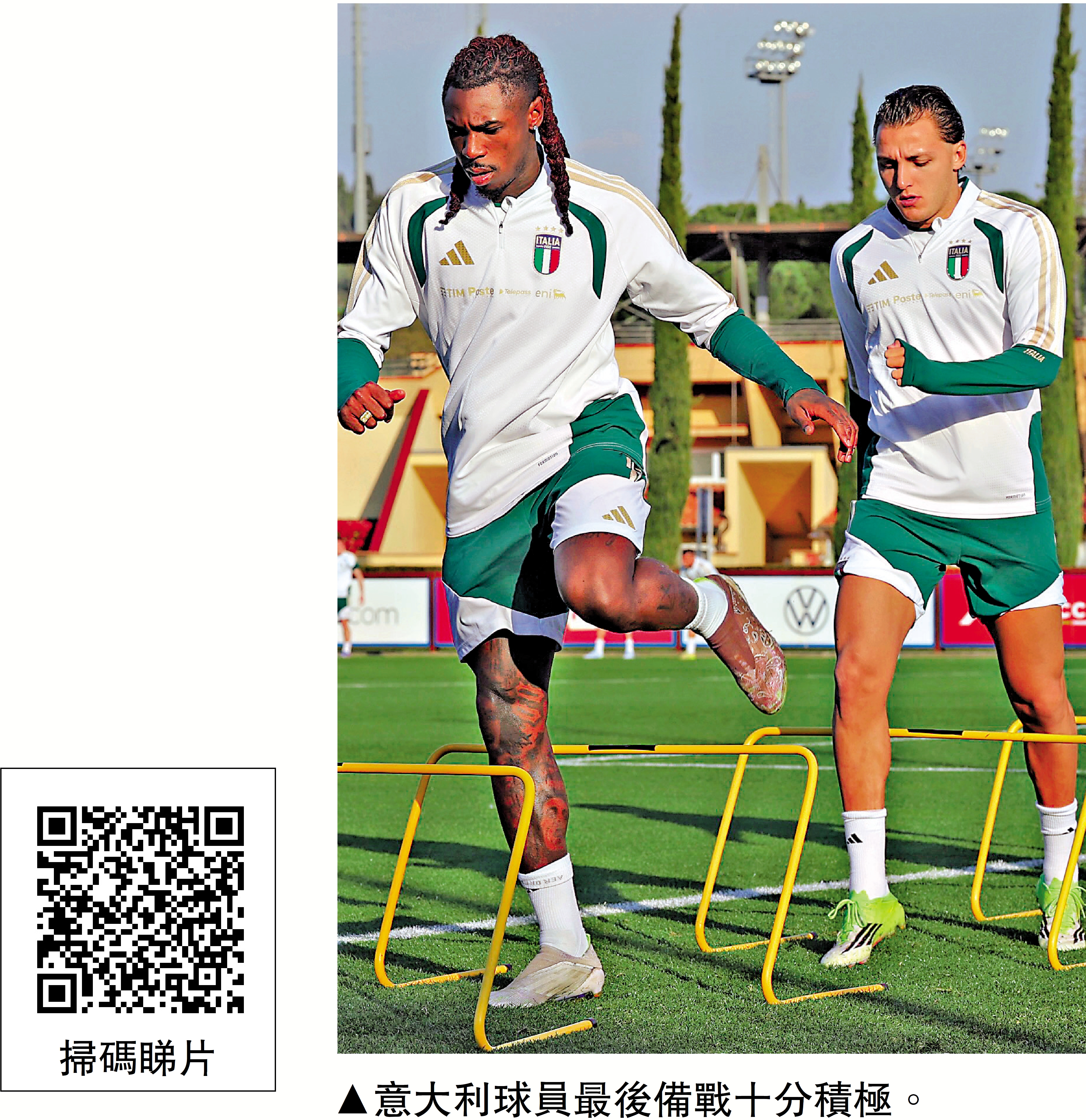 【大公報訊】世界盃外圍賽附加賽27日凌晨上演多場歐洲區和洲際準決賽,其中球迷最關注會位處「A線路」的意大利主場對北愛爾蘭之戰,4屆冠軍意大利已經連續兩屆止步世界盃附加賽,今屆決心要重返決賽周,今戰在客軍實力較弱兼有主力缺陣下,應可先過一關。(UEFA.tv27日凌晨3時45分直播)