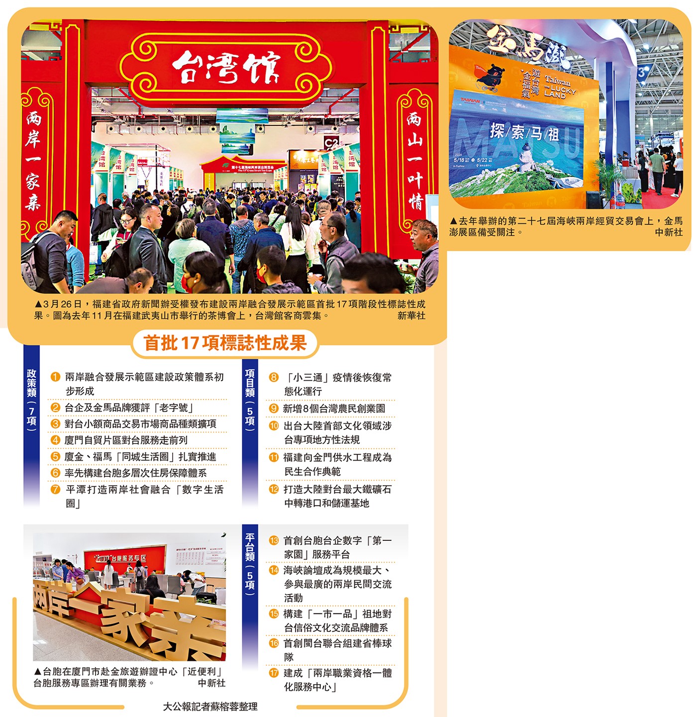 福建省政府新聞辦26日舉行相關發布會,受權發布建設兩岸融合發展示範區首批17項階段性標誌性成果。