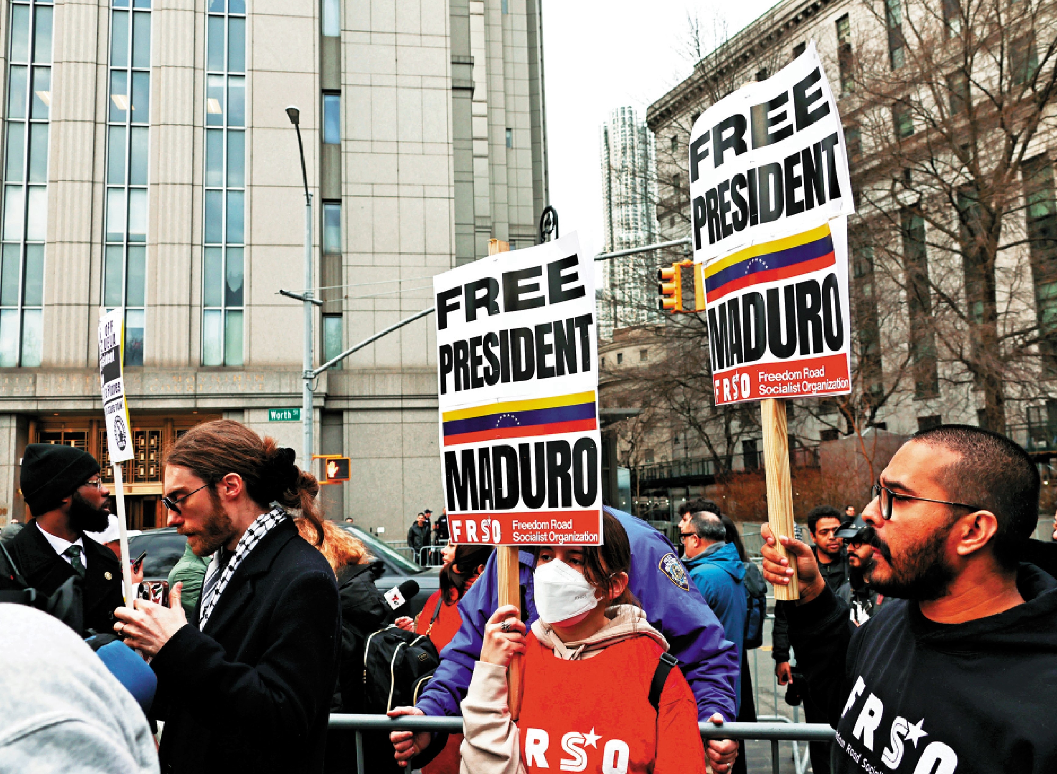與此同時,一些馬杜羅的支持者在法院外示威。他們要求釋放馬杜羅,反對美國政府軍事干涉委內瑞拉。在委內瑞拉首都加拉加斯,大批民眾舉行集會聲援馬杜羅,高呼「釋放總統、反對干涉」「美國無權審判馬杜羅」等口號。