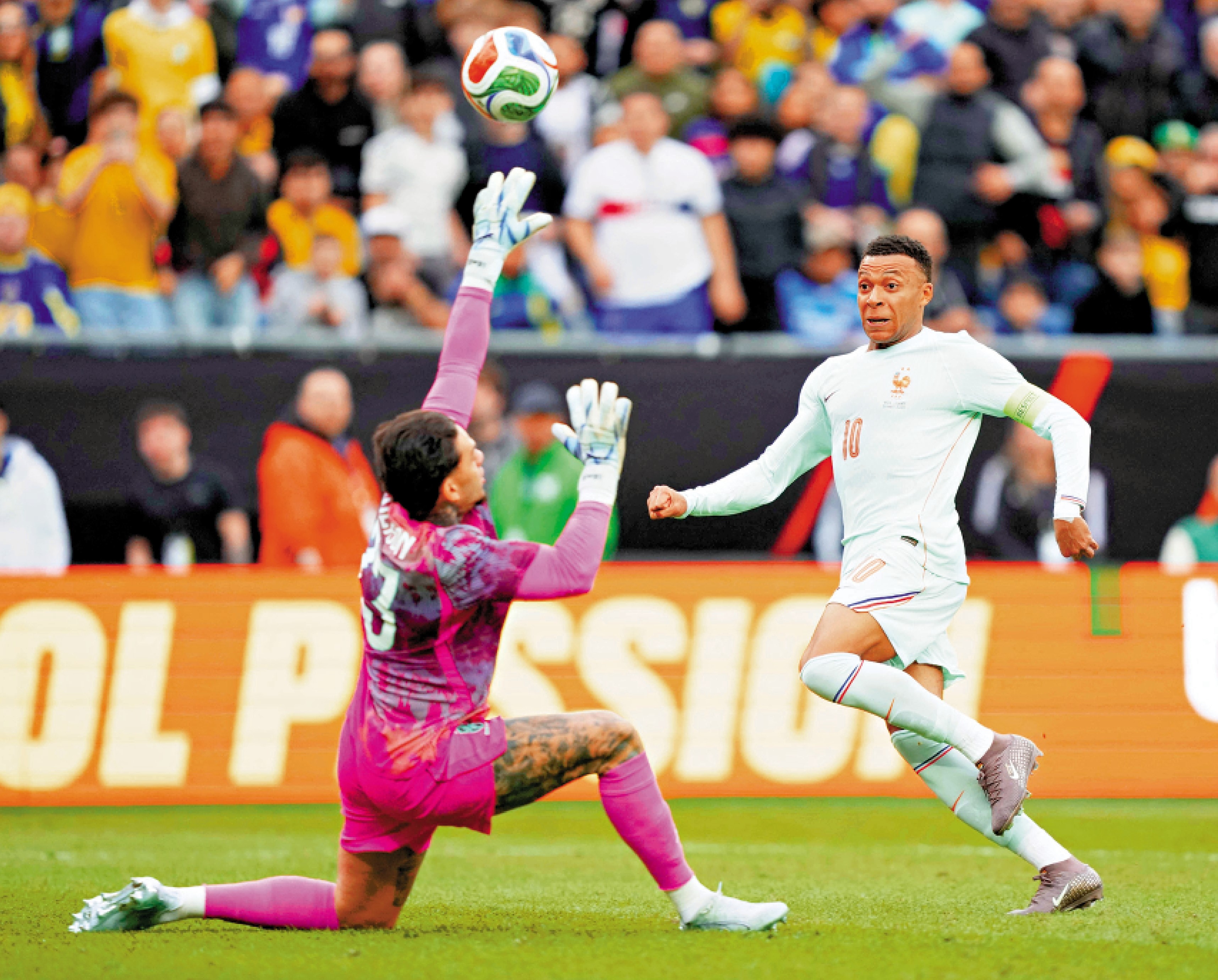 【大公報訊】記者譚德龍報道:巴西與法國兩大前世界盃盟主在今屆主辦國之一的美國進行重量級友誼賽,儘管法國有逾半小時10人應戰,但最終仍以2:1獲勝;射入1球的法軍射手基利安麥巴比,只差1球便追平名宿基奧特的隊史入球紀錄,反觀巴西球迷就高叫尼馬的名字,向主帥安察洛堤施壓要求重召該名隊史神射手。