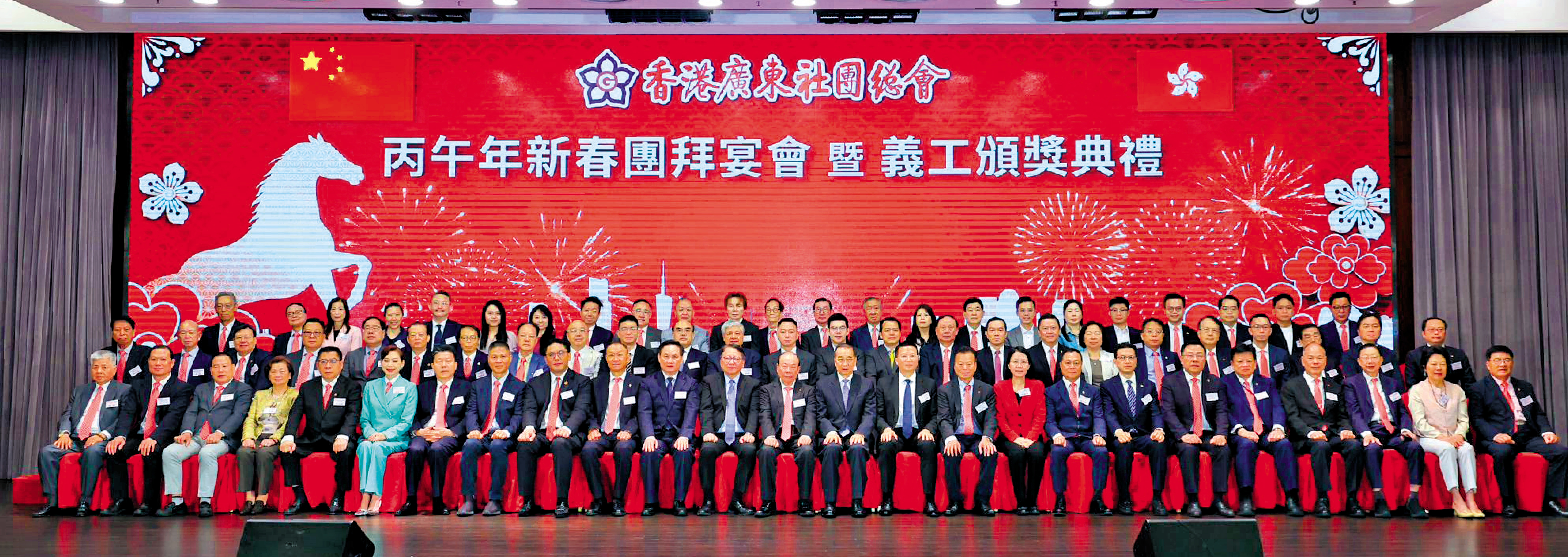 【大公報訊】記者龔學鳴報道:香港廣東社團總會昨日舉行「丙午年新春團拜宴會暨義工頒獎典禮」,現場匯聚社會各界賢達,共慶新春,並表彰過去一年在社區服務中表現卓越的義工。