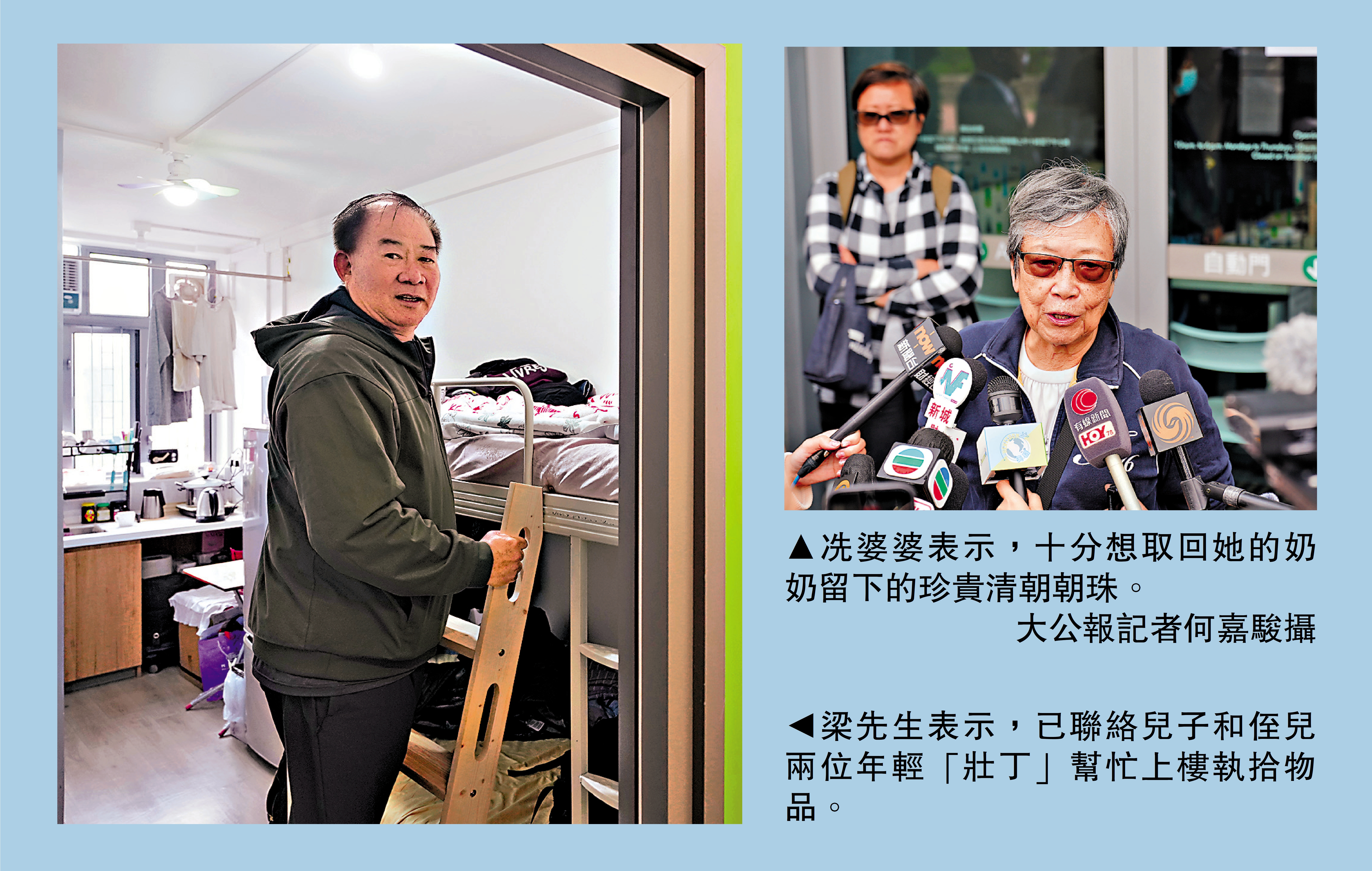 冼婆婆母女對單位情況感到樂觀,估計可獲安排四人同行,考慮請其他人幫忙取物,能取走的東西會盡量全部取走。她理解政府安排是為了安全,認為「取一次一定不夠」,希望若情況允許,可以安排多些上樓取物的機會。冼婆婆表示,十分想取回奶奶留給她的珍貴清朝朝珠,「奶奶其他孫輩都不給,只是給我」,而且非常掛念家中所養的水培植物。