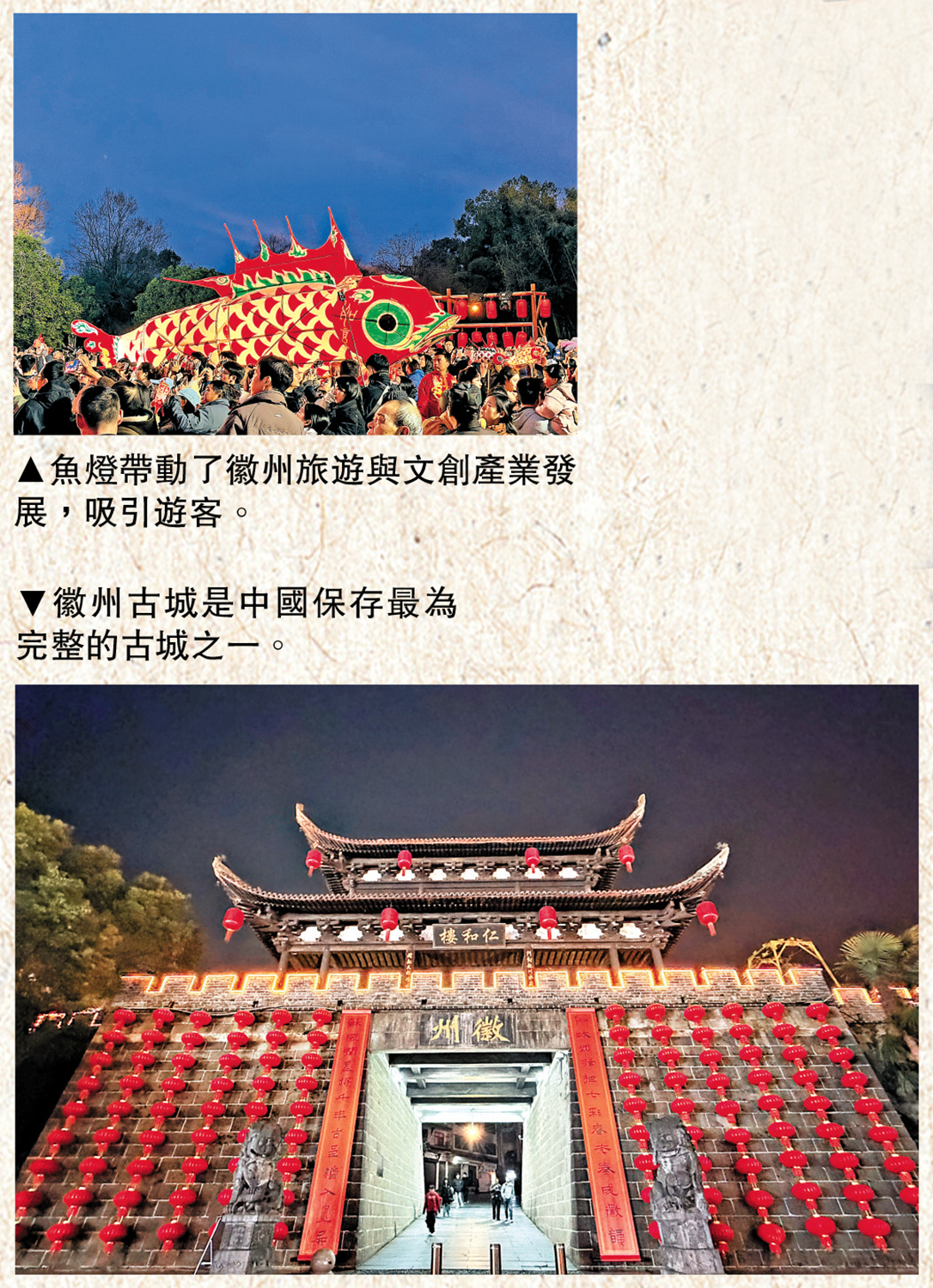 古城的格局依然保留着昔日的風貌。城內古街、古巷與古橋縱橫交錯,猶如一張延展千年的生活網絡。走進狹長的街巷,抬頭可見高高的馬頭牆層層疊起,既有防火作用,也形成獨特的建築輪廓。白天的徽州古城古樸安靜,而到了夜晚,燈籠亮起,街巷被柔和的光線點亮,彷彿將遊人帶回到數百年前的徽州繁華時代。