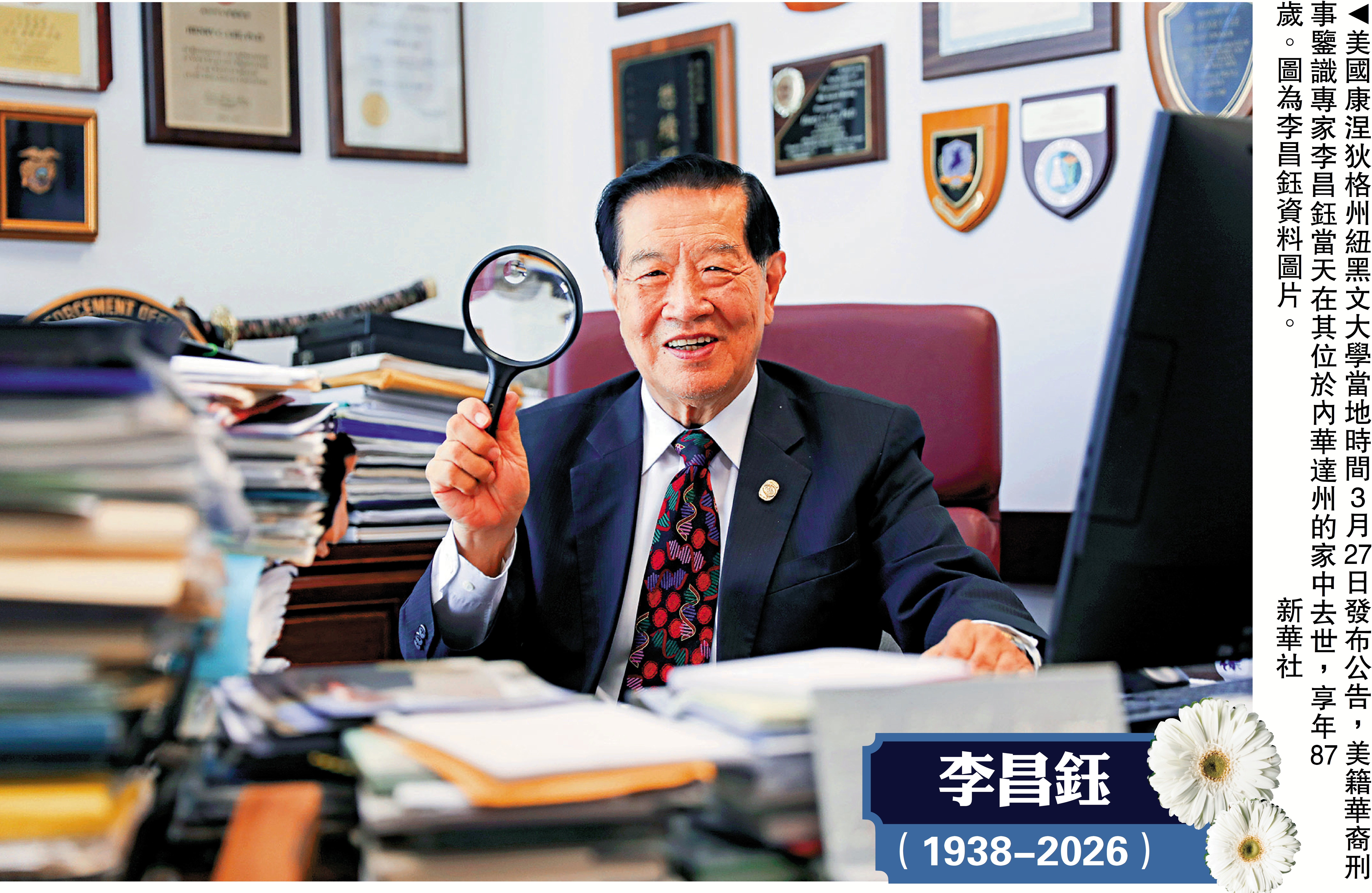美國康涅狄格州紐黑文大學27日發布公告:美籍華裔刑事鑒識專家李昌鈺當天在美國內華達州的家中逝世,享年87歲。被譽為「華人神探」的李昌鈺一生參與超8000起案件,偵辦過碎木機殺人案、小肯尼迪強暴案、「9·11」事件、美國肯尼迪總統被殺案、尼克松「水門事件」、克林頓性醜聞事件,被稱為「世紀審判」的辛普森殺妻案等大案。他開創了以微物證據定罪嫌犯的先河,擅長在蛛絲馬跡中發現真相。「我只用科學講話,用證據講話,有多少證據就講多少話。」這句貫穿李昌鈺職業生涯。