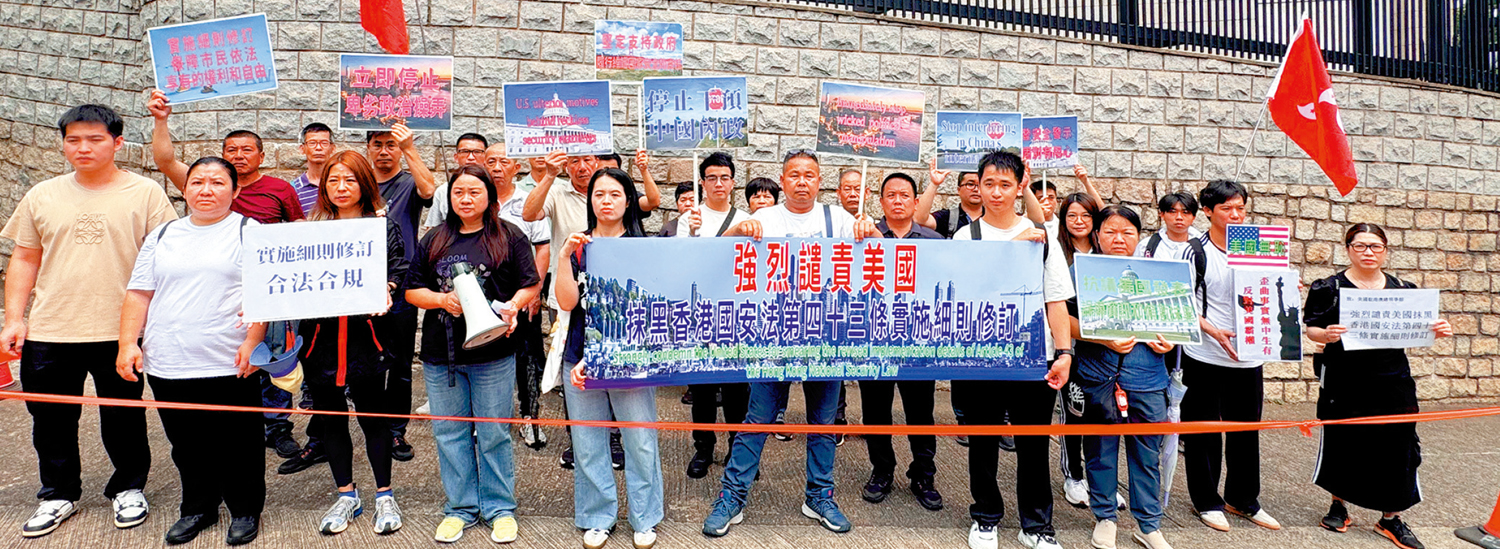 【大公報訊】記者龔學鳴報道:美國日前發布所謂旅行安全警示、抹黑香港國安法,歪曲抹黑香港法治,香港社會強烈憤慨。多批市民昨日到美國駐港總領事館示威,譴責美國假借所謂旅遊安全警示,混淆視聽,抹黑香港法治的惡劣行為,嚴正要求美國立即停止卑劣的政治操弄,立即停止以任何形式干涉中國內政、插手香港事務。