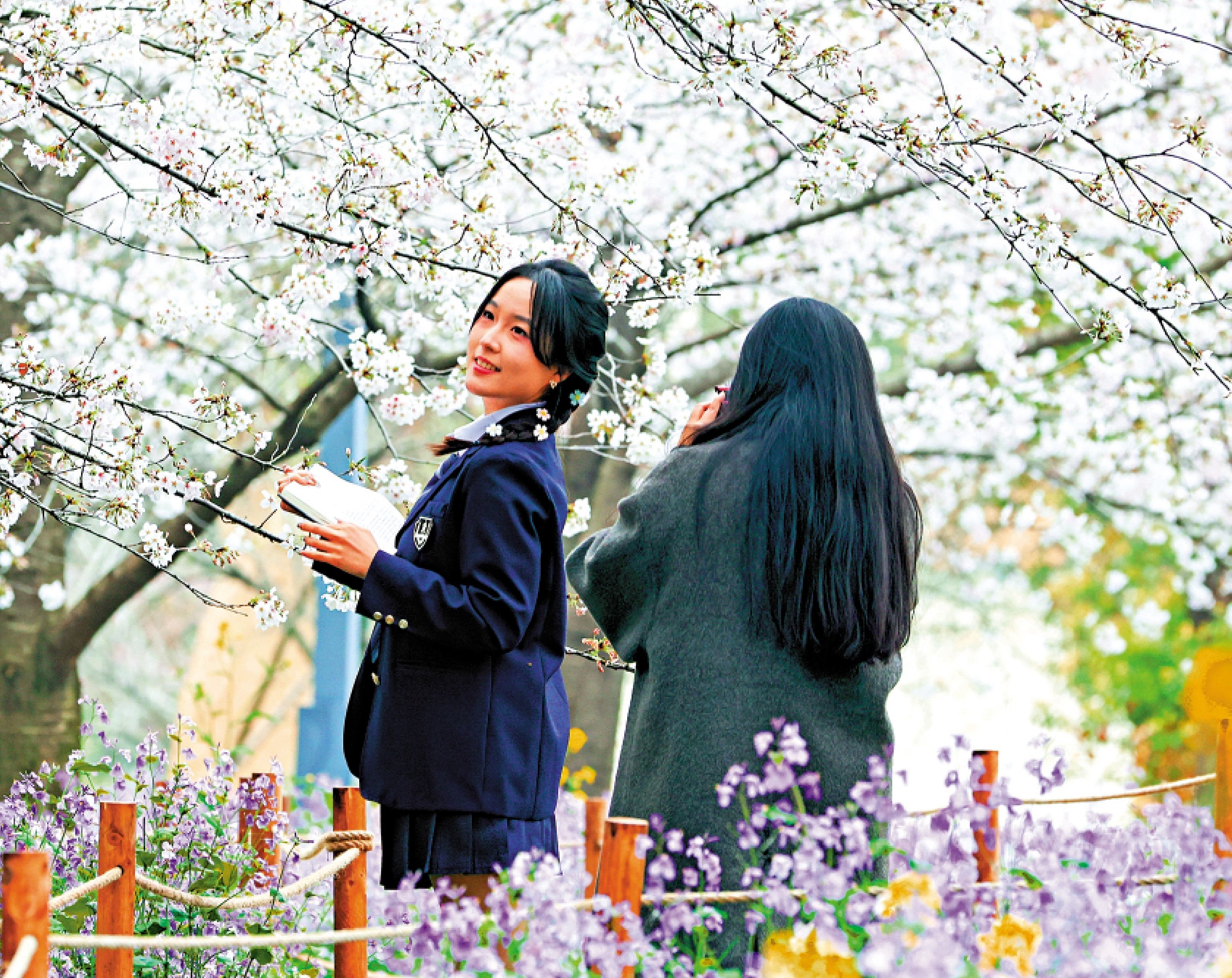 大公報記者獲悉,為延長遊客市民的賞櫻期,自2011年開始,武漢市園林科學研究院啟動櫻花科研,目前建成全國首個國家櫻花種質資源庫,共收集國內外櫻花資源150種。武漢不斷補種櫻花新品種,科學搭配,實現花期接力,早櫻如椿寒櫻、河津櫻、鍾花櫻,在每年三月上旬即進入盛花期,晚櫻品種如關山櫻、普賢象櫻、鬱金櫻、御黃衣櫻,花期則在三月下旬至四月中旬。不同品種的櫻花接替迎來盛花期,從而讓遊客在整個春天都能看到櫻開綻放。\大公報記者張帥