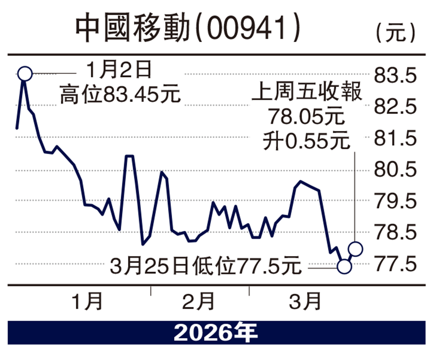 我經常提及中移動(00941),盈利符合預期,在手機用戶增長放緩下,正加大對新業務的開發和投入,這就是算力和智能網絡的投資,人工智能(AI)的廣泛應用推動Token(詞元)用量和Byte(字節)流量的高速增長,成為中移動等電訊公司的新增長點。可以預期,這方面的增長會不斷壯大,支持電訊公司有盈利「第二春」。中移動現價有6.7厘息,無賤價拋售的理由,可伺機在77元水平吸納,同時也可兼顧留意中電信(00728),其處境與中移動相若,現價也有6厘息。