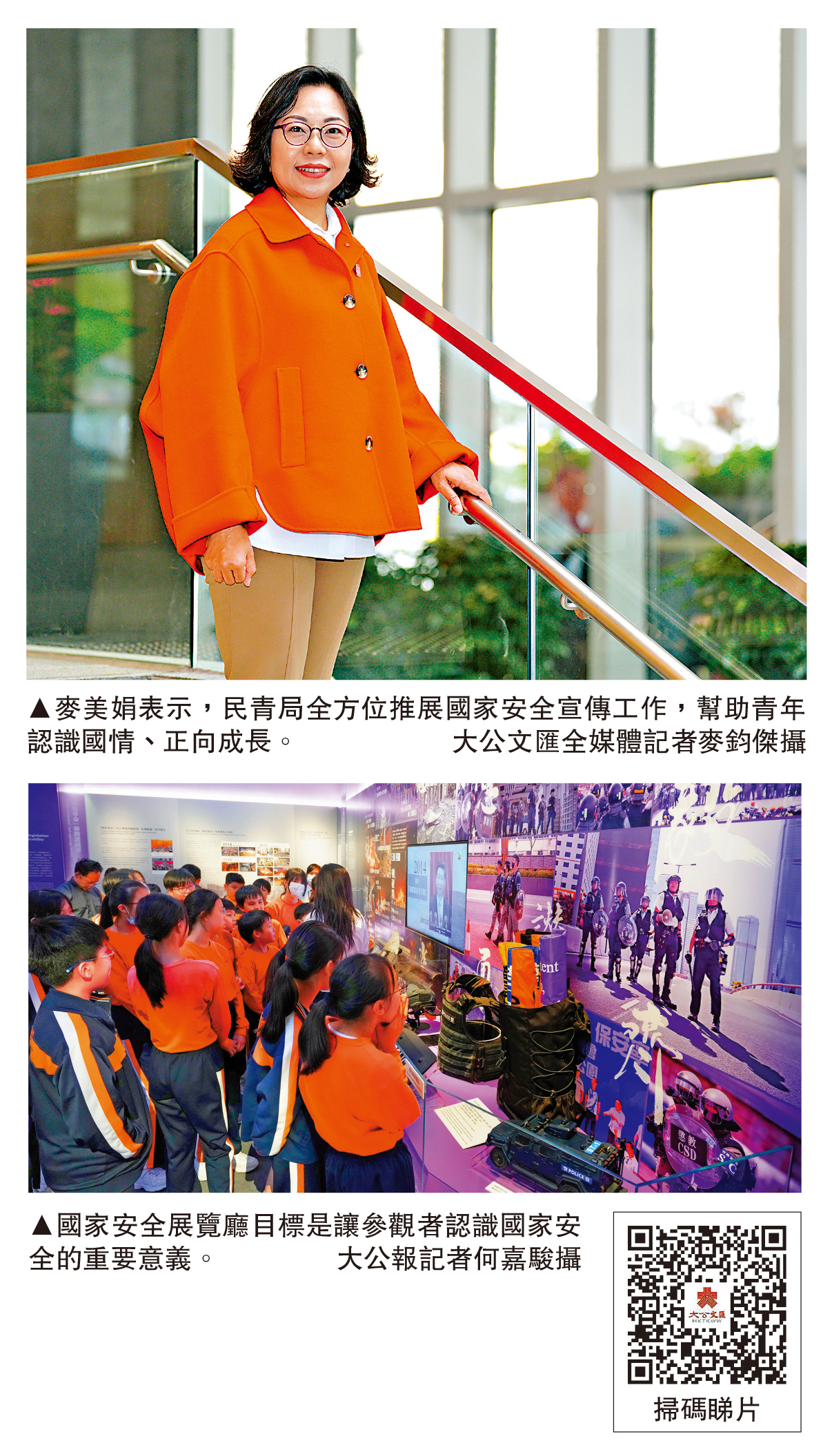 民政及青年事務局局長麥美娟日前接受媒體採訪表示,民青局將通過18區民政事務處、青年事務組及地區夥伴,全方位推展國家安全宣傳工作,幫助青年認識國情、正向成長,並強調「維護國家安全只有進行時,必須長期持續關注」。\大公文匯全媒體記者 陳子萌