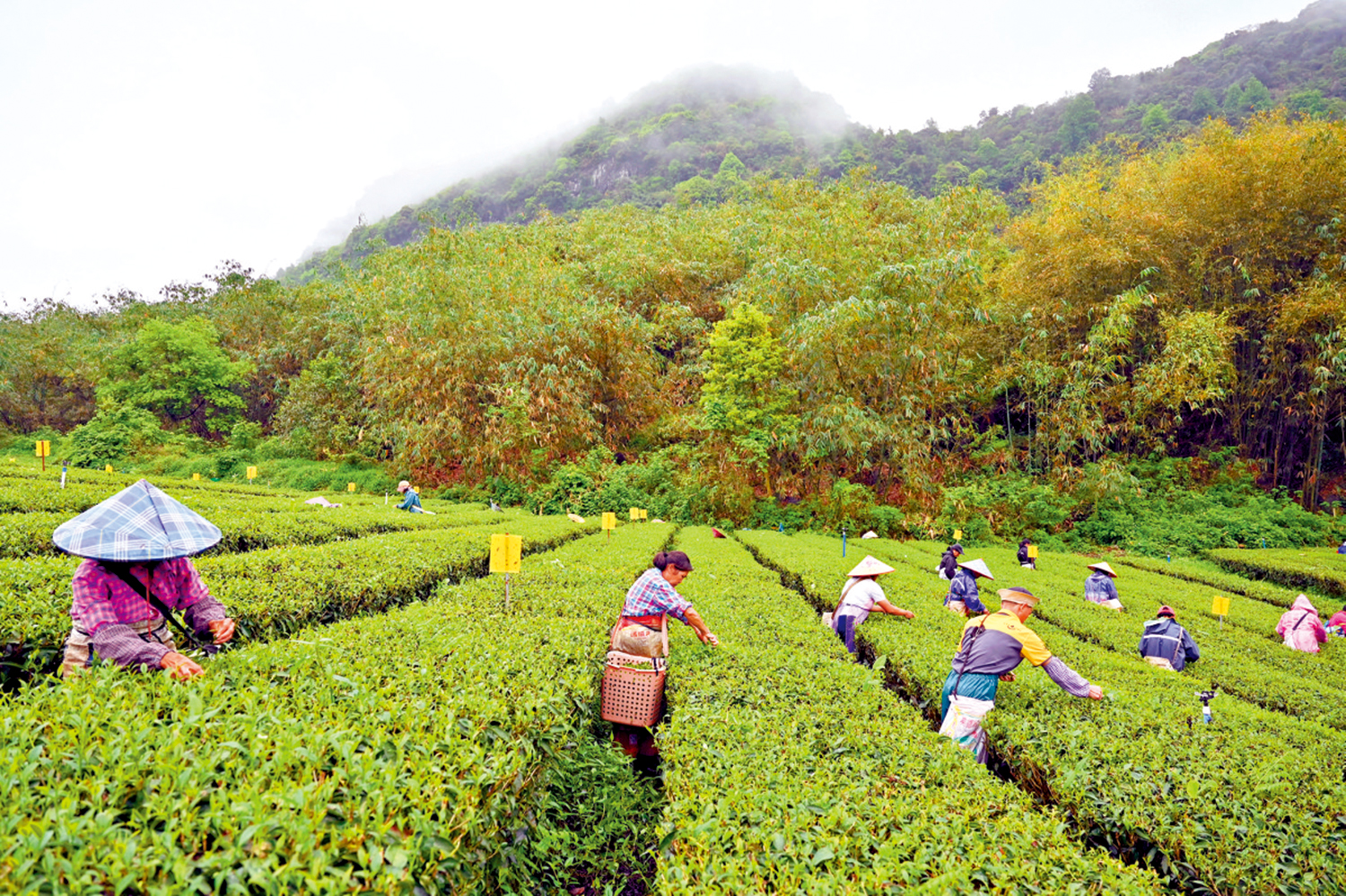 圖為日前茶農在英德市積慶里茶廠採摘春茶。\中新社