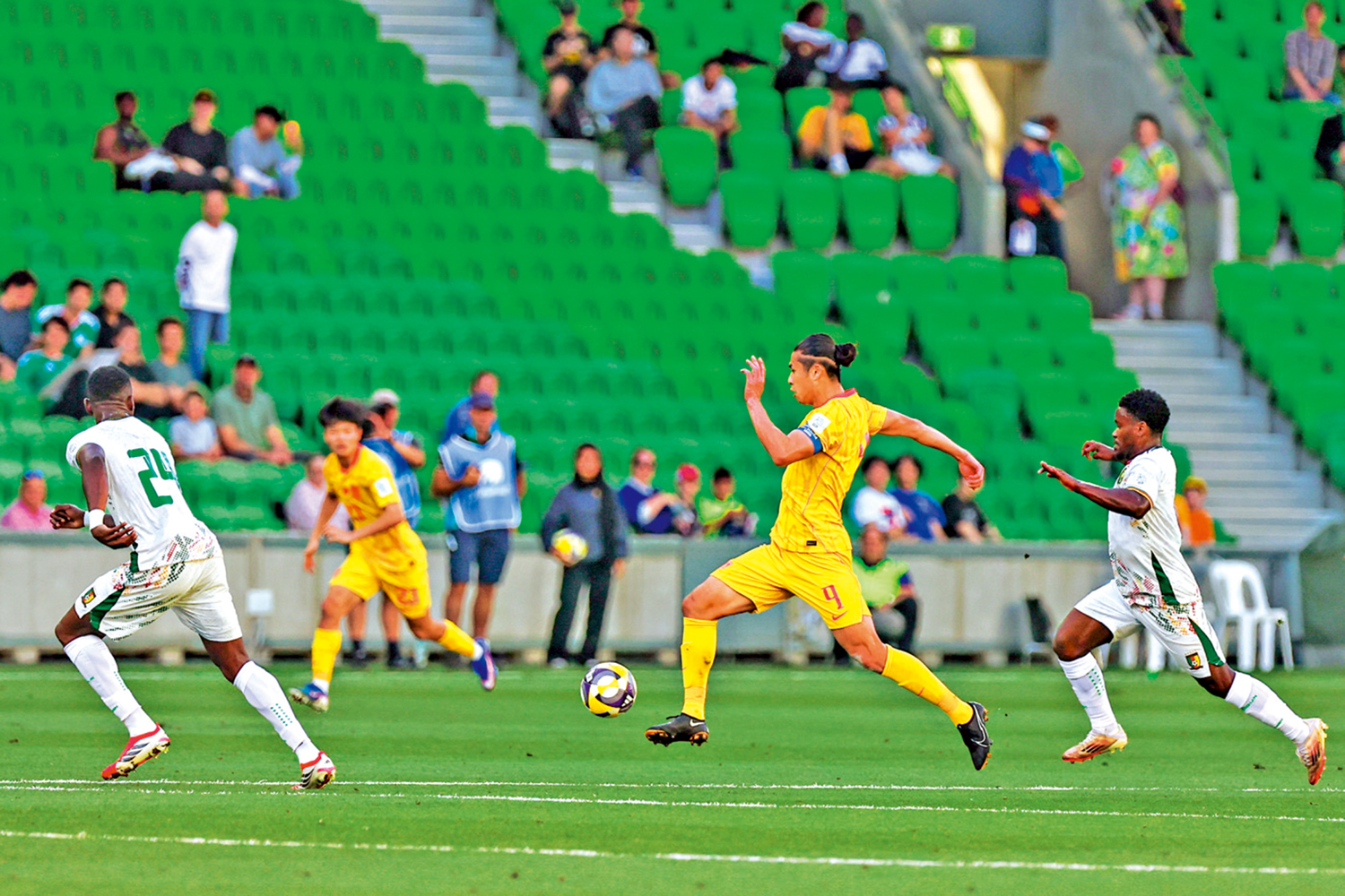 【大公報訊】中國男子足球隊3月31日在澳洲舉行的國際足聯(FIFA)系列賽對陣「非洲雄獅」喀麥隆。國足上仗以2:0擊敗世界盃決賽周參賽國家庫拉索,今仗力爭再贏喀麥隆,可惜上半場被攻破兩次,下半場林良銘及韋世豪未能把握機會,終以0:2輸給喀麥隆。