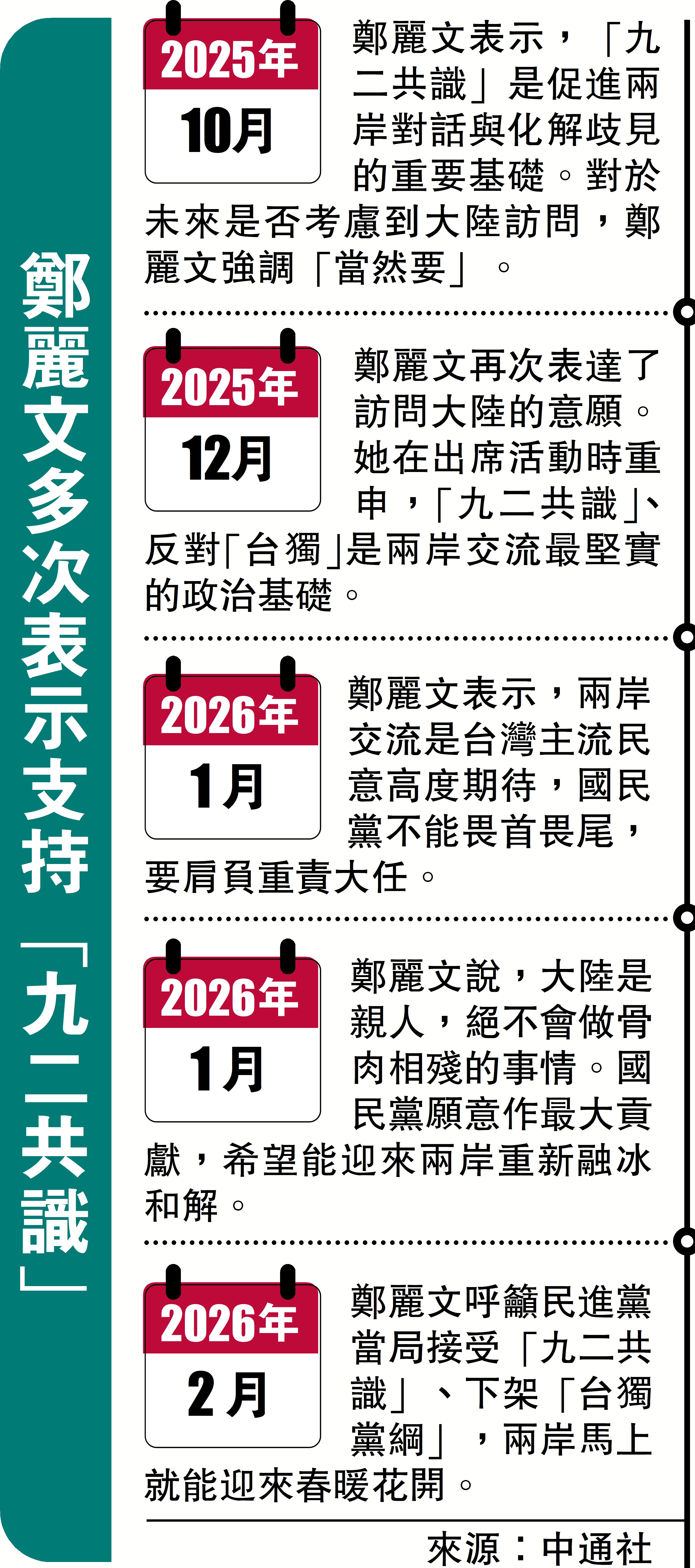 圖:鄭麗文多次表示支持「九二共識」