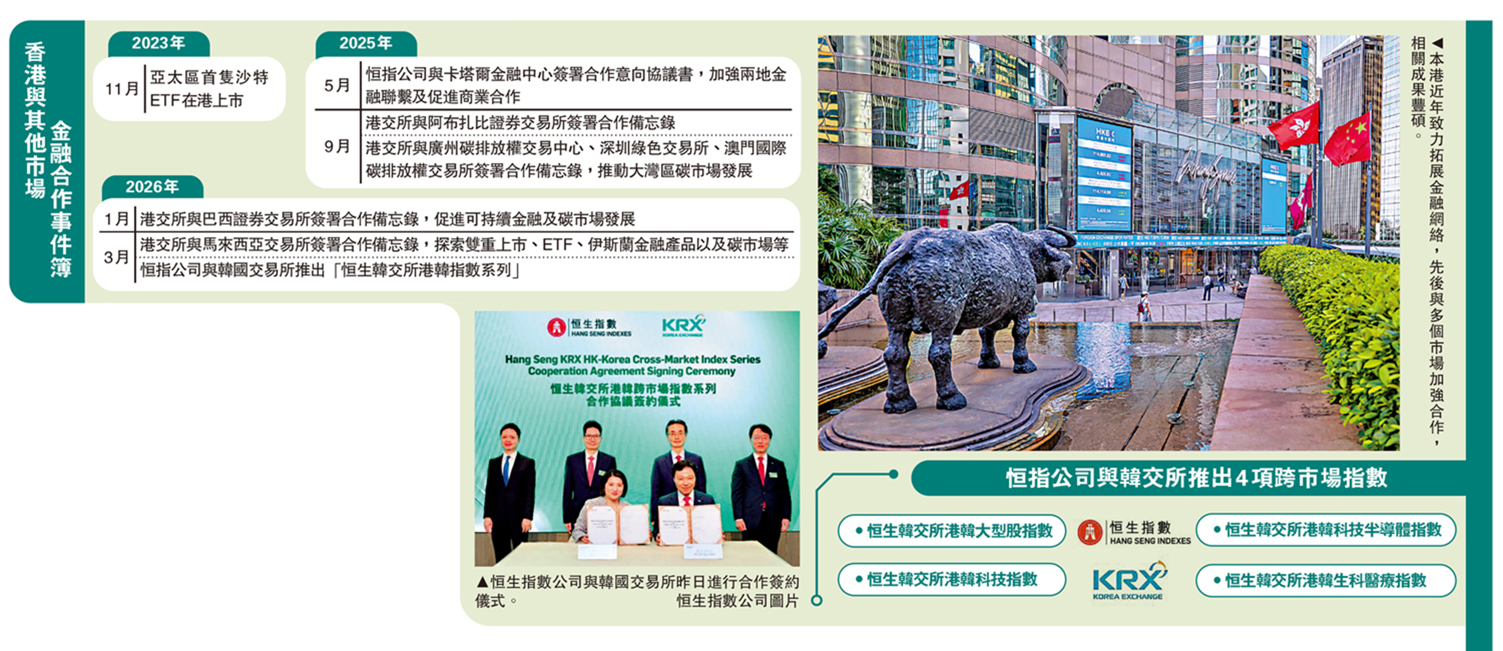 恒生指數公司與韓國交易所合作推出「恒生韓交所港韓指數系列」,首批四項指數涵蓋大型股、半導體、科技及生科醫療等行業,年內擬推出更多主題指數。