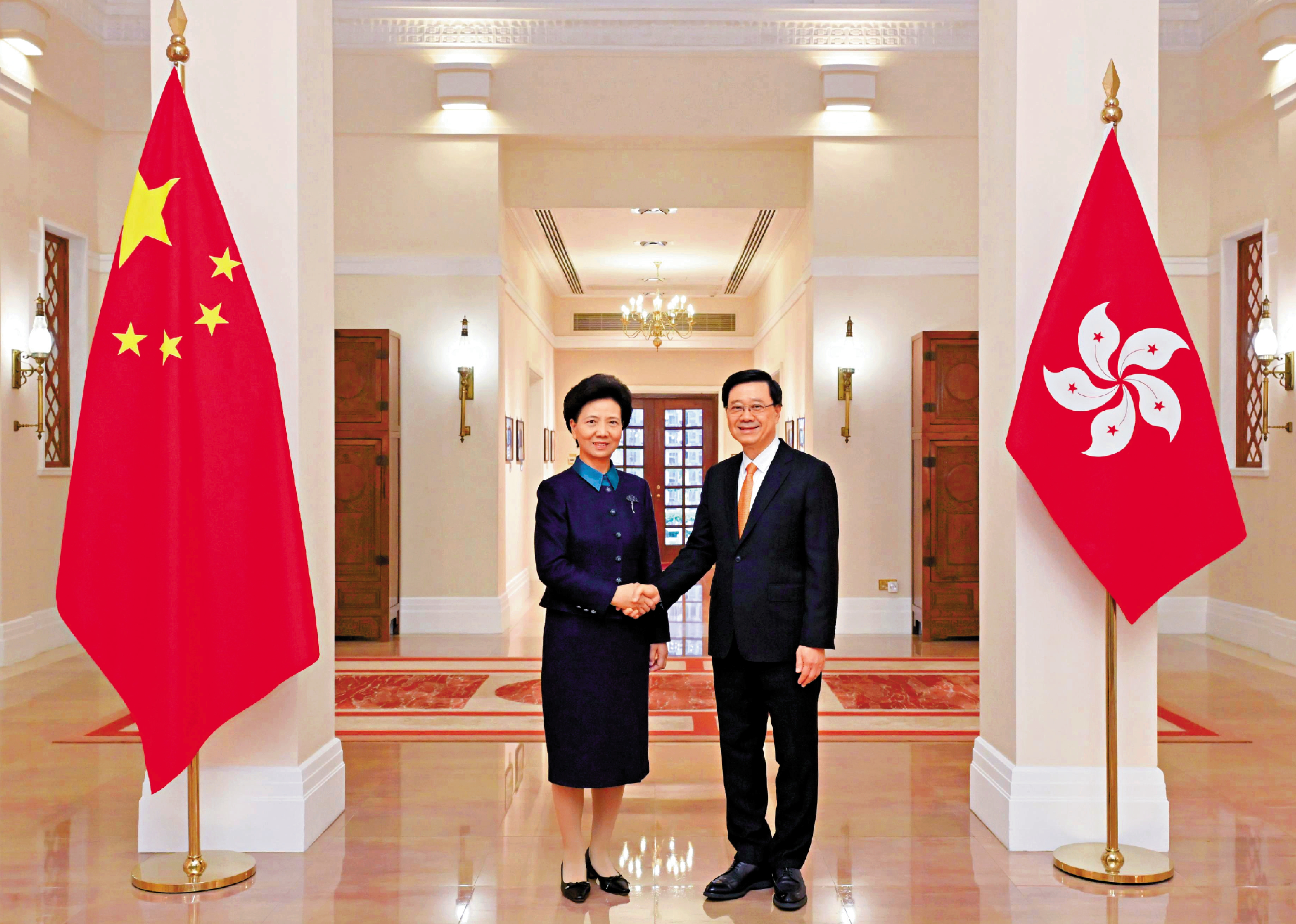 【大公報訊】記者龔學鳴報道:行政長官李家超昨日在禮賓府與國務委員、國務院婦女兒童工作委員會主任、中華全國婦女聯合會主席諶貽琴會面。李家超歡迎諶貽琴國務委員率團來港,出席香港家庭暨婦女發展高峰會並給予指導,體現國家對香港特區婦女事業和家庭建設工作的重視。