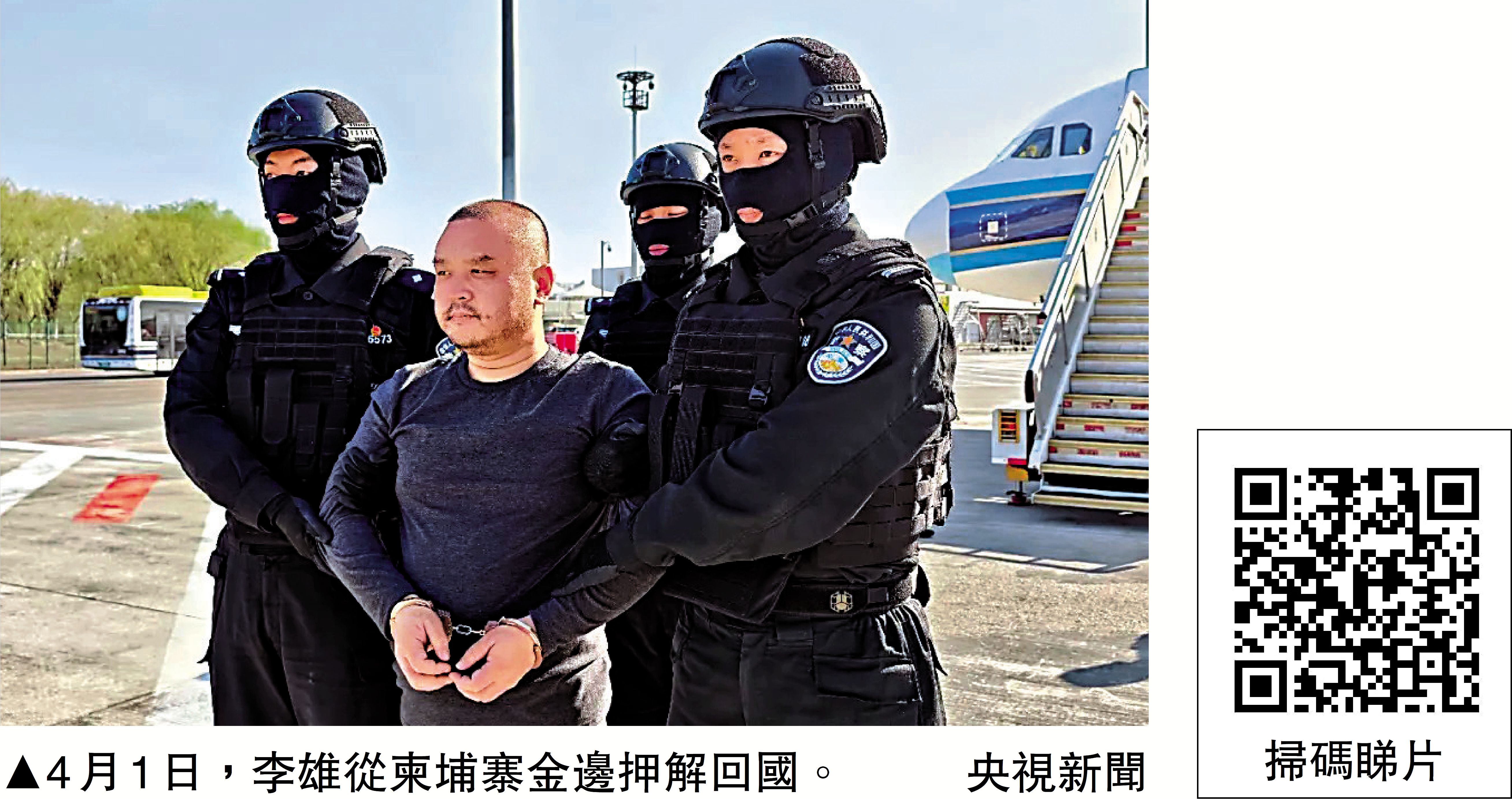 中柬執法合作再傳捷報。4月1日,中國公安部通報,成功將陳志犯罪集團核心骨幹成員李雄從柬埔寨金邊押解回國。李雄涉嫌開設賭場、詐騙、非法經營、掩飾隱瞞犯罪所得等多項犯罪。