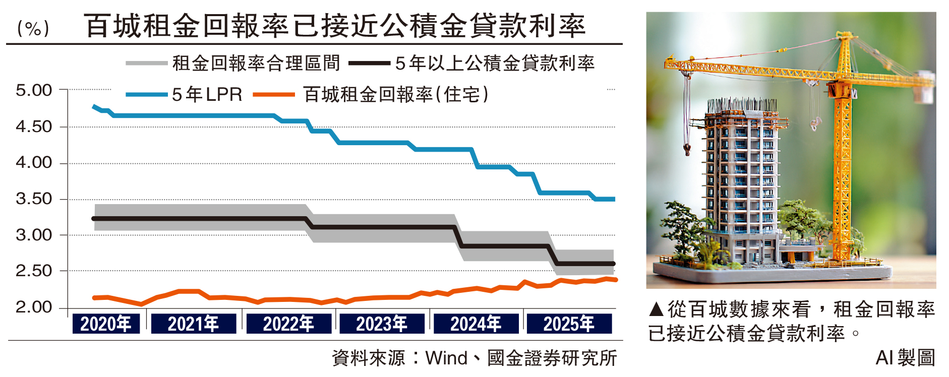 春節過後,內地一線樓市迎來小陽春。本輪行情最大特點,在沒有中央增量刺激政策的背景下,房地產出現自行企穩跡象。從百城數據來看,租金回報率接近公積金貸款利率。而供平過租的局面,正是香港樓價去年企穩的重要因素。