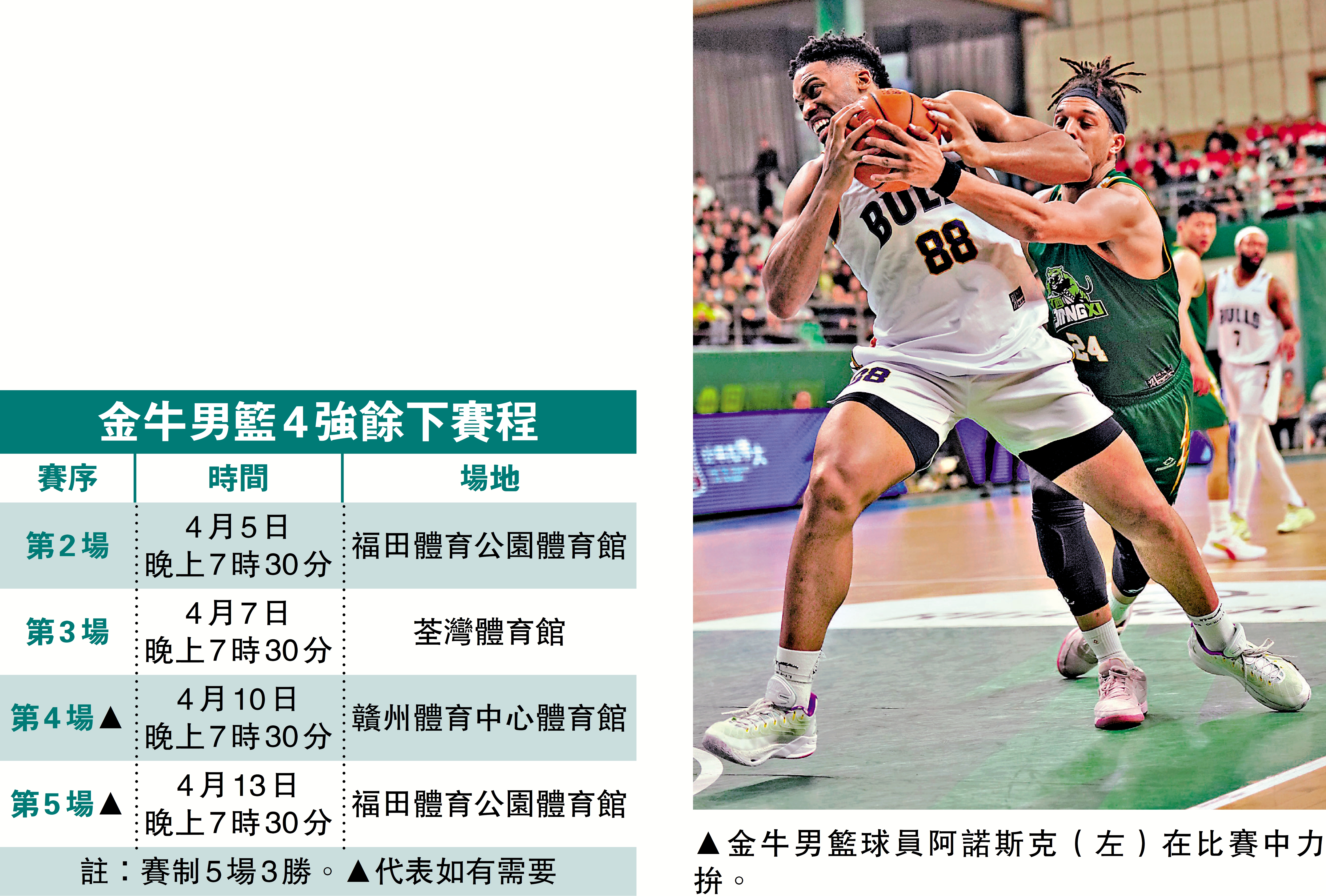 雙方將在4月5日晚上7時30分移師福田體育公園體育館進行第2場賽事,由金牛主場。