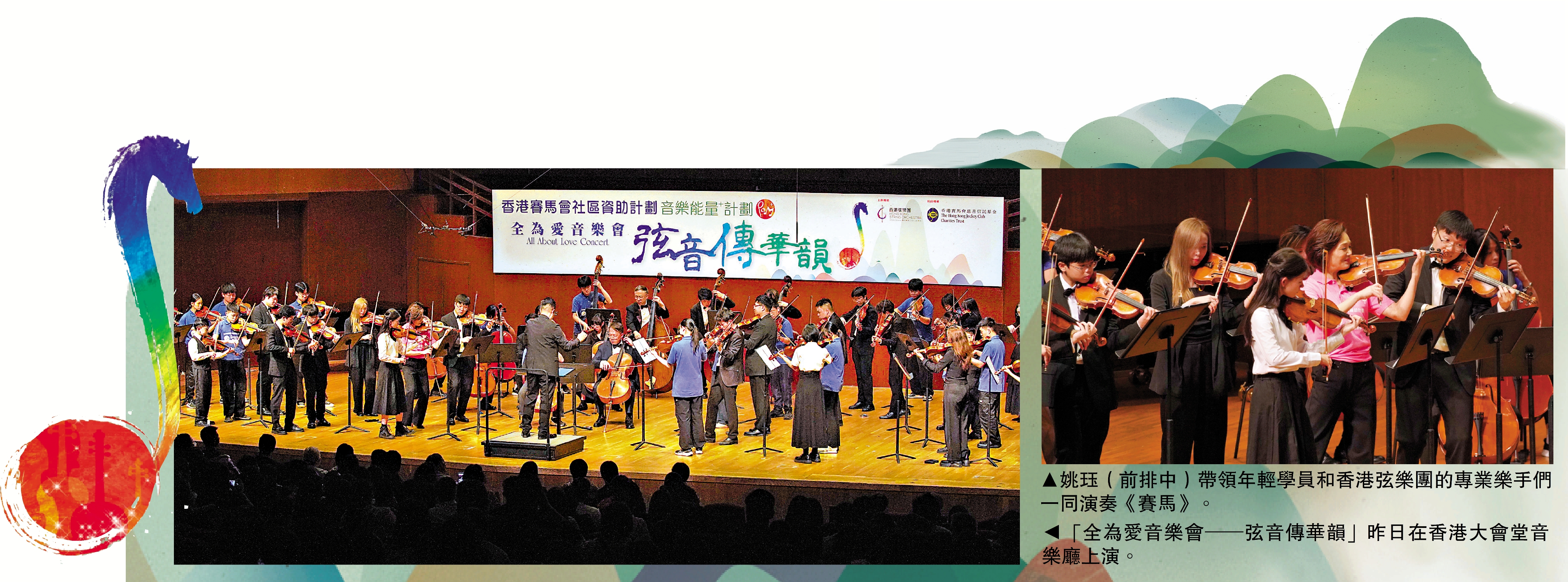 【大公報訊】大公文匯全媒體記者丁寧報道:由香港賽馬會慈善信託基金支持、香港弦樂團推行的「全為愛音樂會─弦音傳華韻」昨日(3日)在香港大會堂音樂廳上演。音樂會以「音樂能量+計劃」學員的成長故事為主線,由香港弦樂團創辦人及藝術總監姚珏領銜近百位「弦光展現」樂團從初級班至高級班、不同年齡段的學員,與香港弦樂團的專業樂手同台演奏,並邀請亞洲青年弦樂團擔任表演嘉賓,讓公眾得以近距離感受中西樂音交融的真摯與溫暖,見證音樂點亮生命的精彩。這場以「十年回顧,邁向第十一年」為定位的公益演出,是一份跨越十年的社會承諾──向公眾展示音樂如何作為「精神食糧」,真實地改變逾900名基層孩子的生命軌跡,將正能量輻射至整個香港社會。