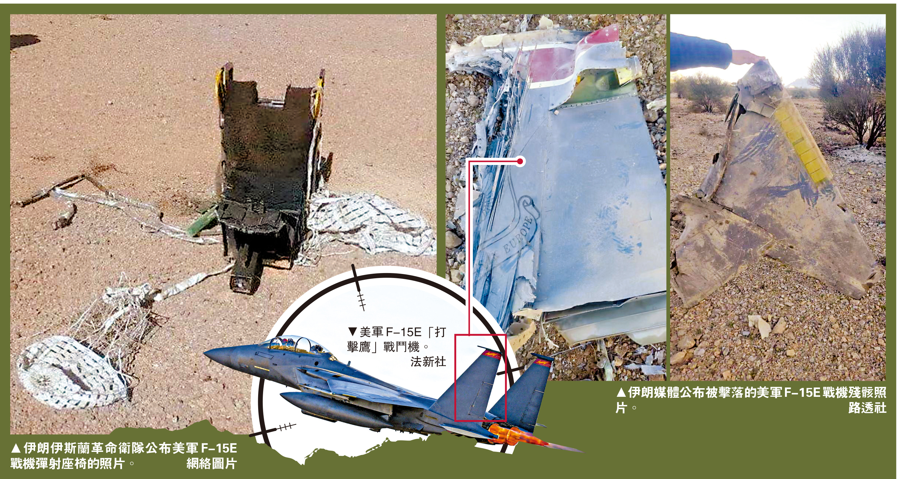 伊朗3日宣布擊落美軍一架F-15E戰鬥機,美軍隨後派出多架軍機營救,其間美軍的一架A-10攻擊機被擊中墜毀,其機師獲救,兩架參與搜救的直升機被伊朗擊中,機組人員受傷。美軍已尋獲其中一名F-15E機師,另一名機師目前下落不明。英媒稱美軍已派出特種部隊進入伊朗搜索,而伊朗為活捉美軍機師懸賞6萬美元(約47萬港幣)。美媒稱,伊朗擊落兩架美軍飛機,美國總統特朗普此前多次吹噓「伊朗已喪失防空能力」的說法遭狠狠「打臉」。美國曾向伊朗提議停火48小時,遭到伊朗強硬回絕。\大公報記者 陳明