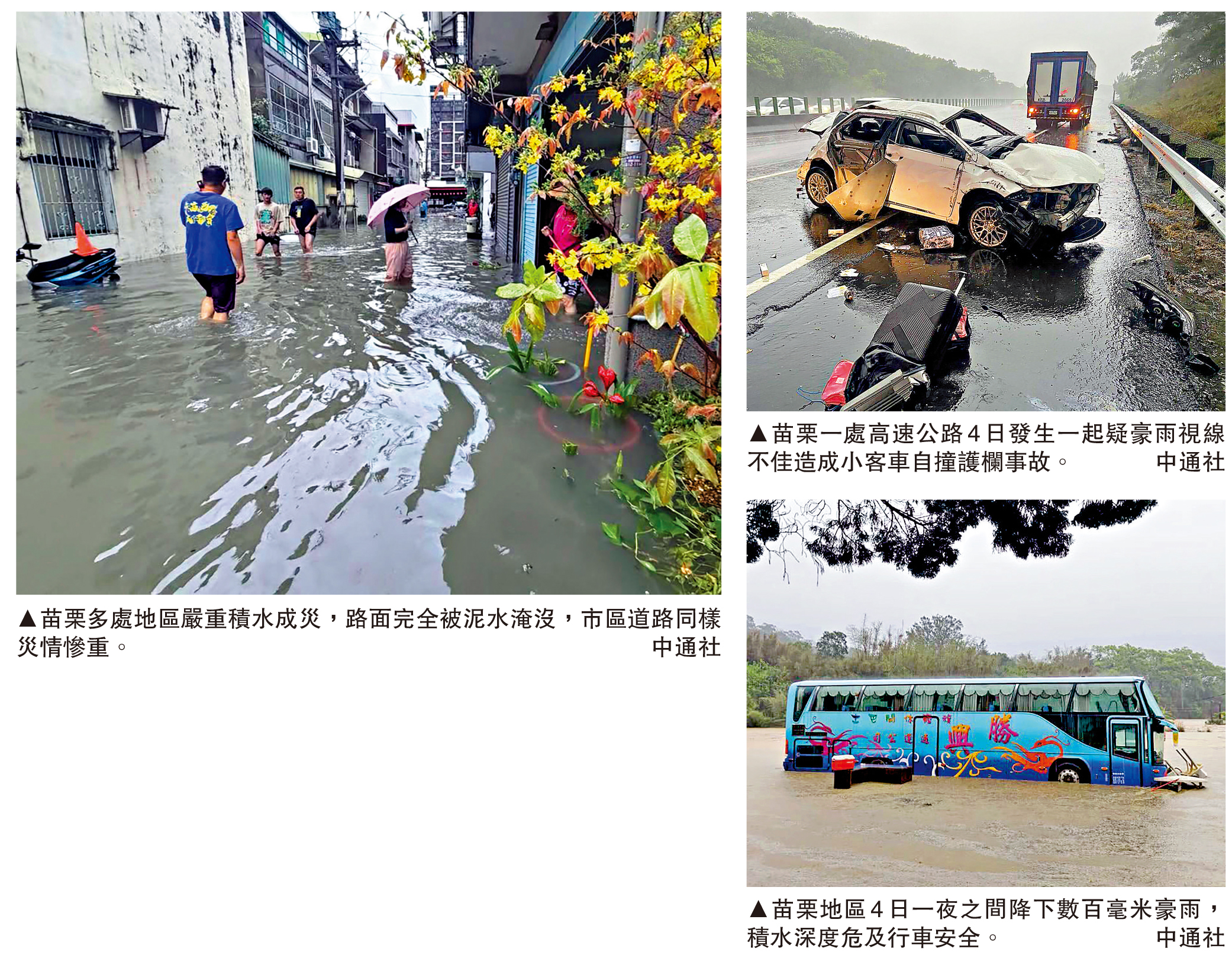 【大公報訊】綜合中通社及台媒報道:台灣受鋒面影響,新竹、苗栗及台中地區遭遇暴雨,其中苗栗縣受災最為嚴重,多地發生淹水災情,道路、鐵路一度因暴雨中斷。當地農民表示,70年來沒有見過如此嚴重的水災。